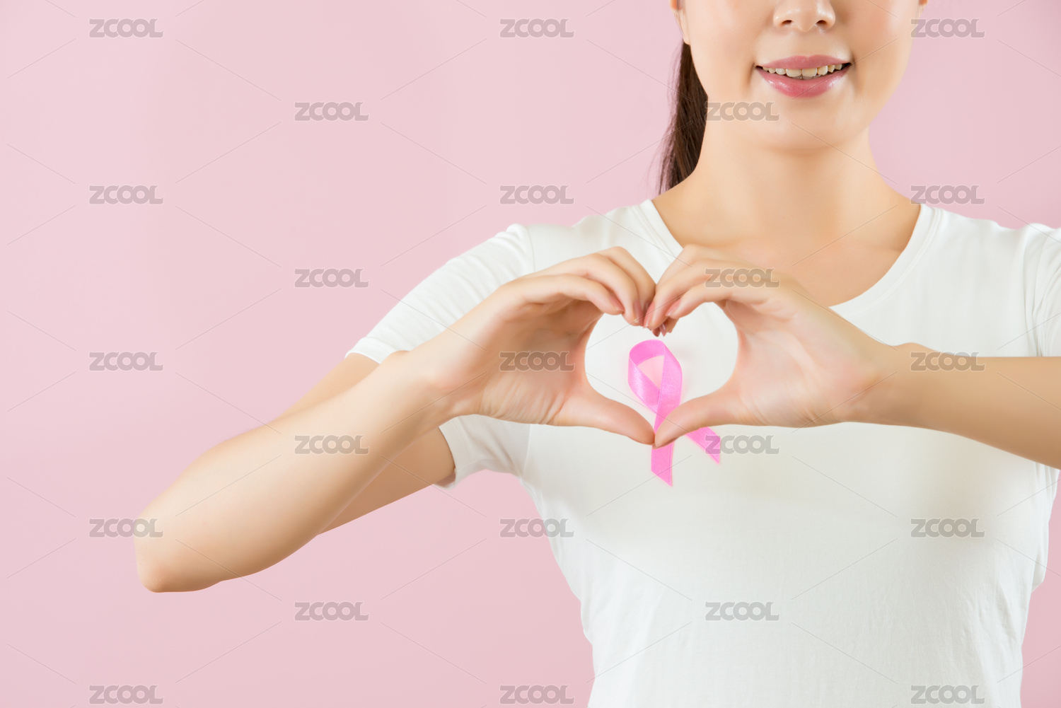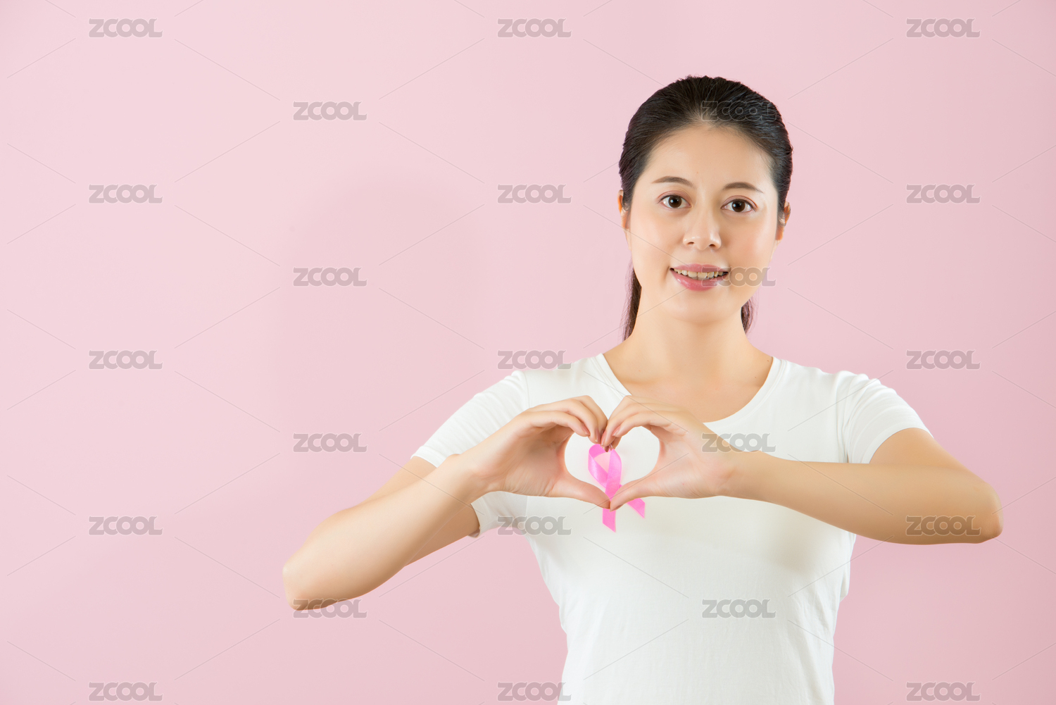 中國年輕的亞裔健康婦女顯示心臟形手勢(shì)來對(duì)孤立的粉紅色背景的防癌疾病繼電器正面的信息和信念而戰(zhàn)。醫(yī)療和健康理念。