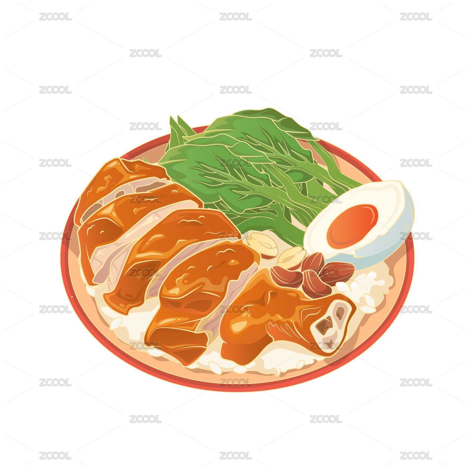 中國風(fēng)廣式燒臘豉油雞飯餐飲美食矢量插畫