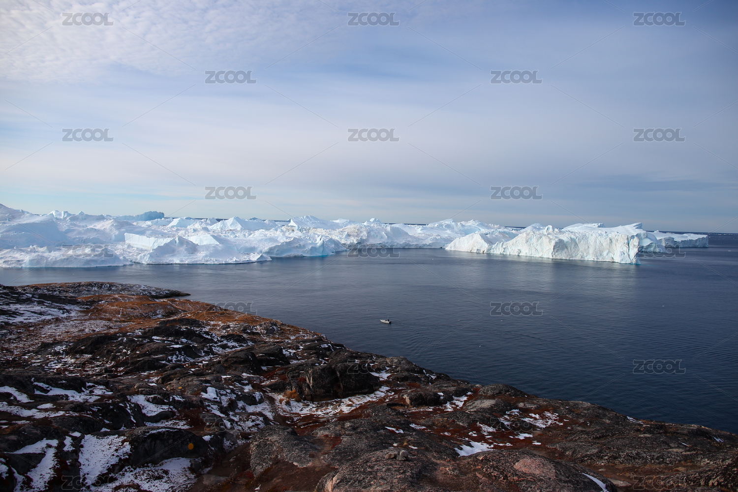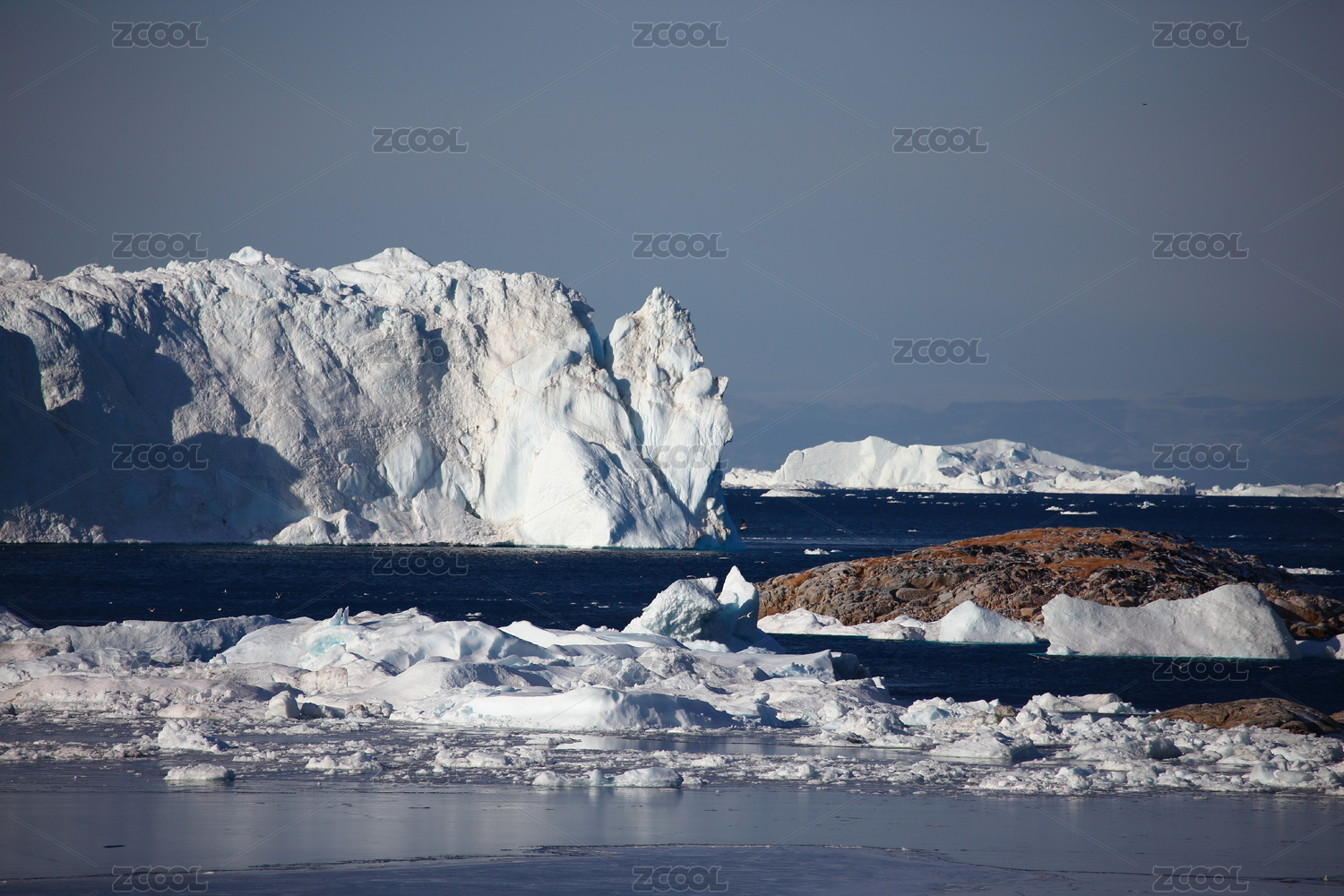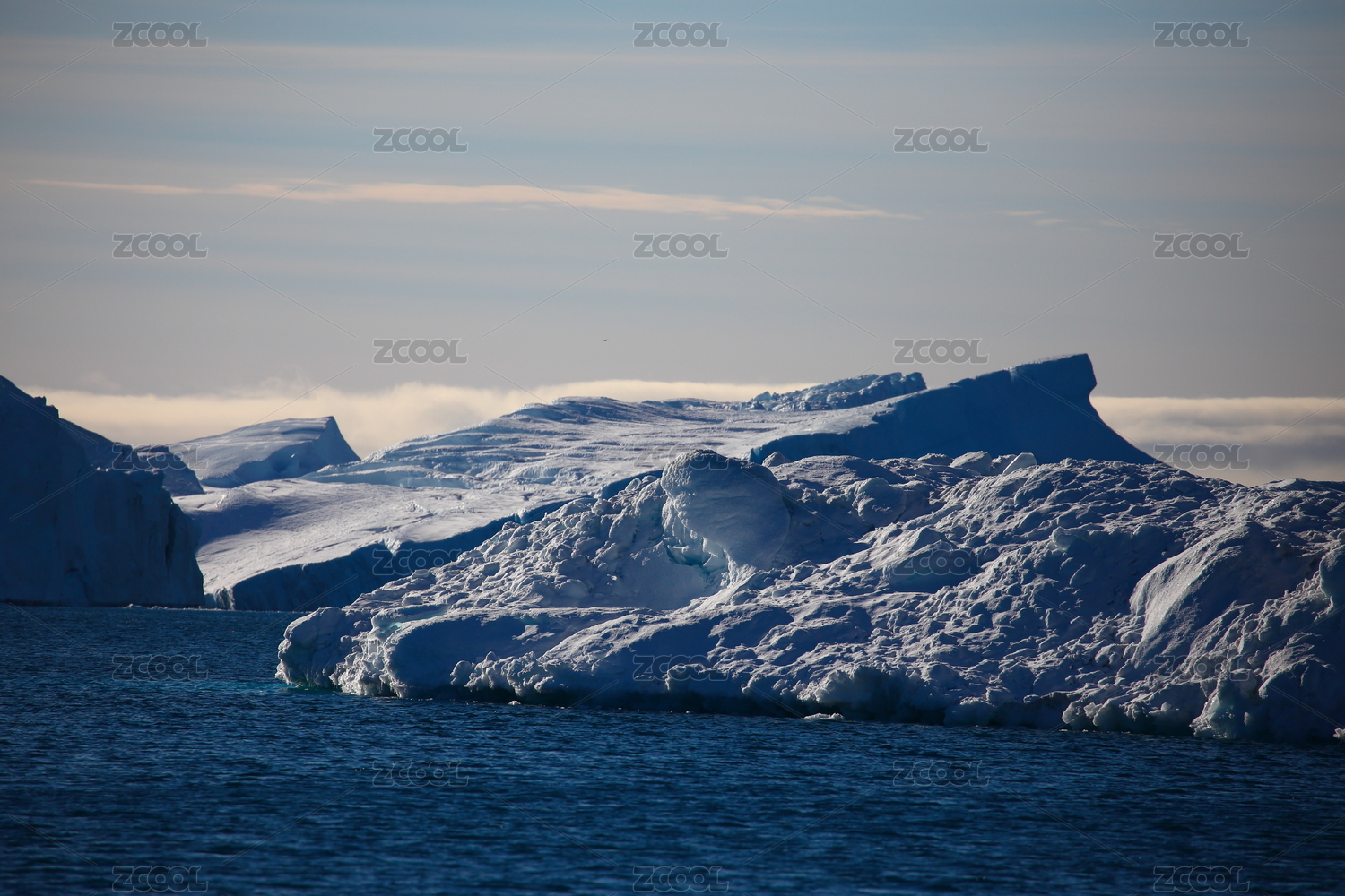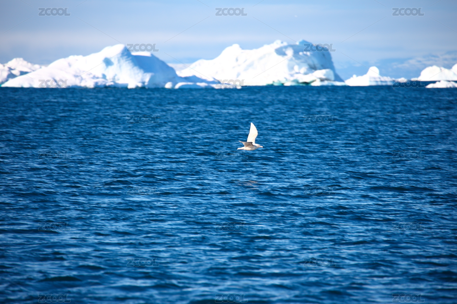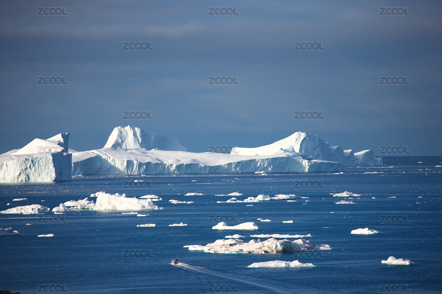 北極,丹麥格陵蘭的巨大冰山浮冰海鳥和晨曦