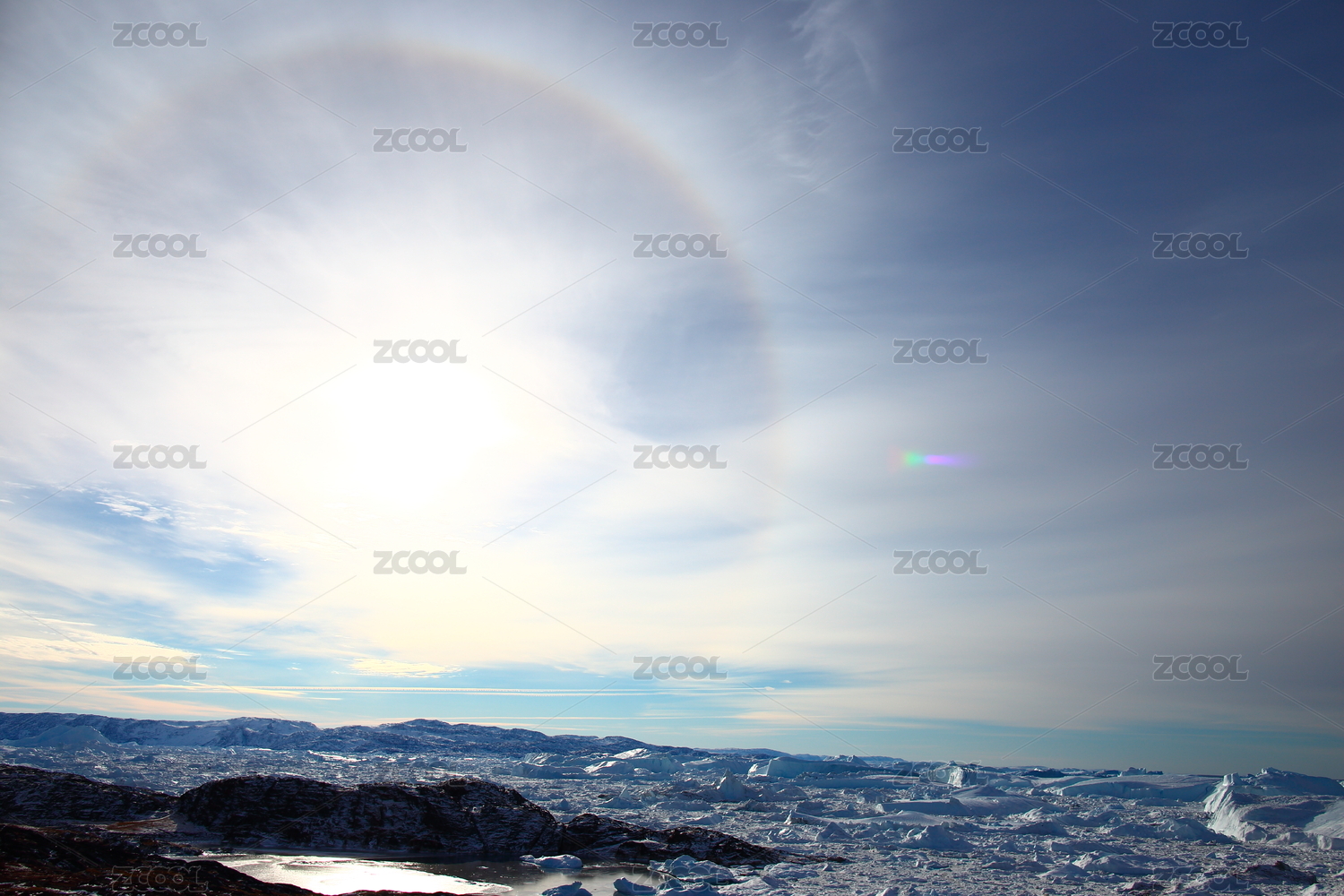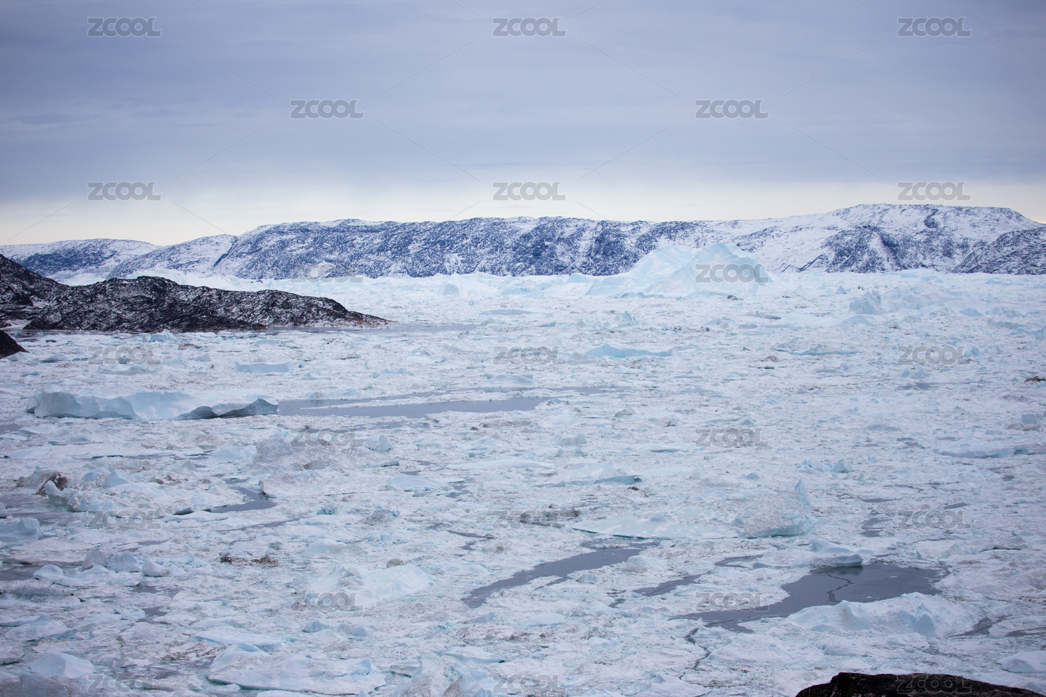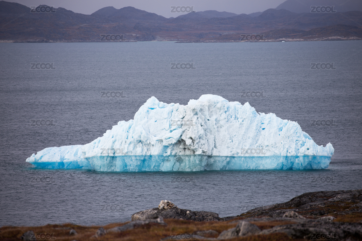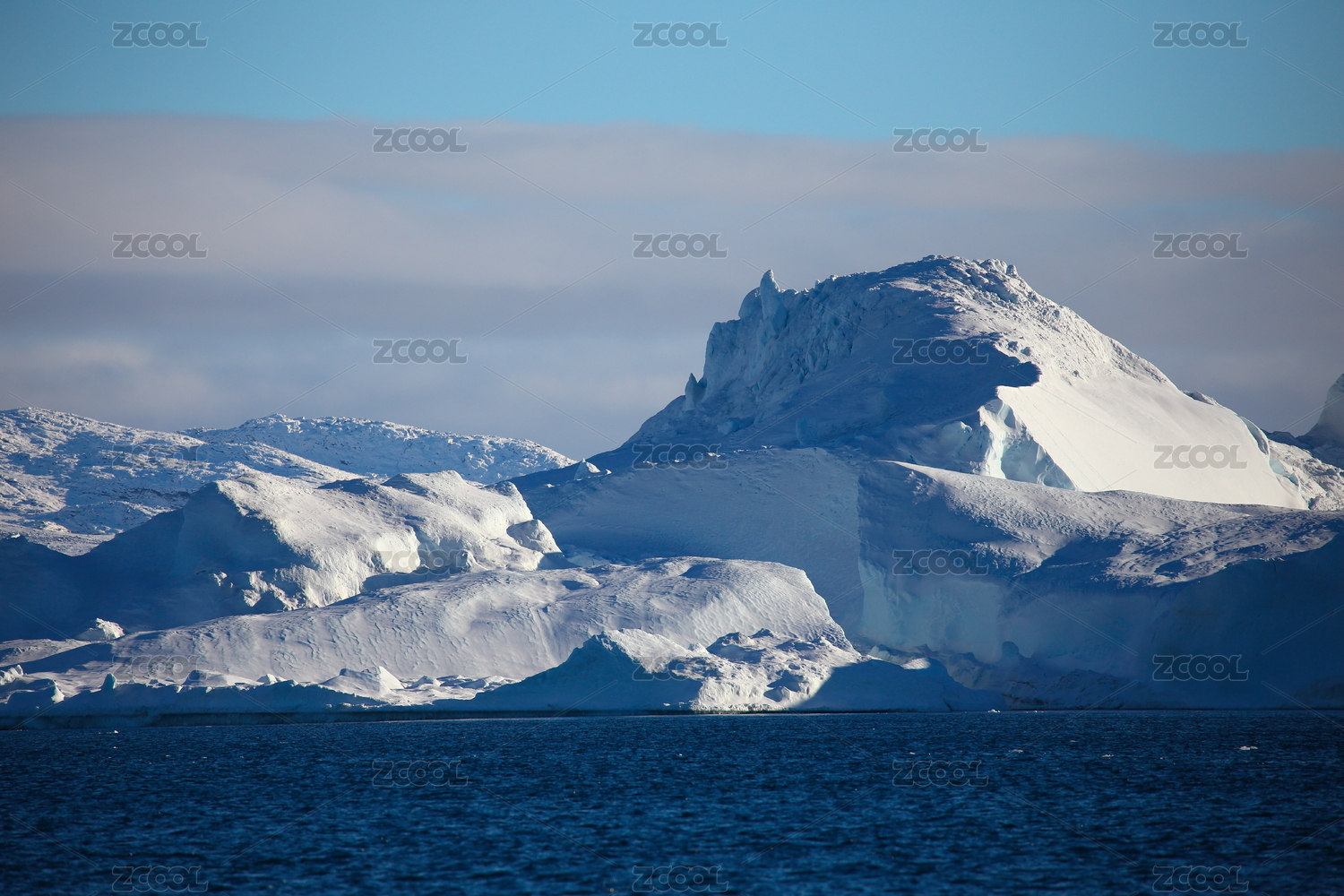 北極,丹麥格陵蘭的巨大冰山浮冰海鳥和晨曦