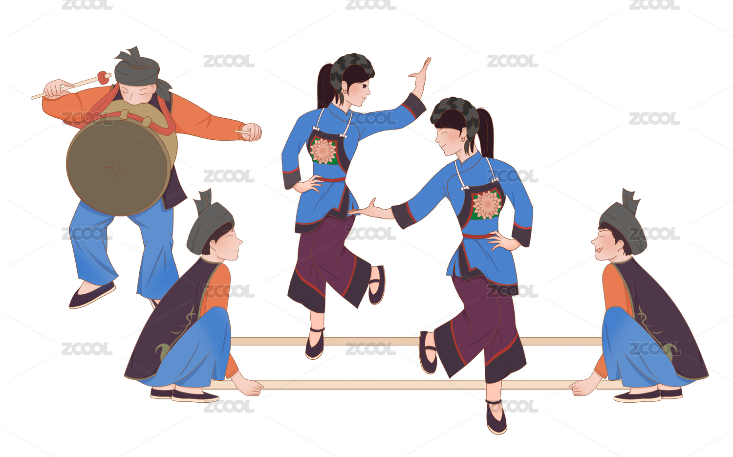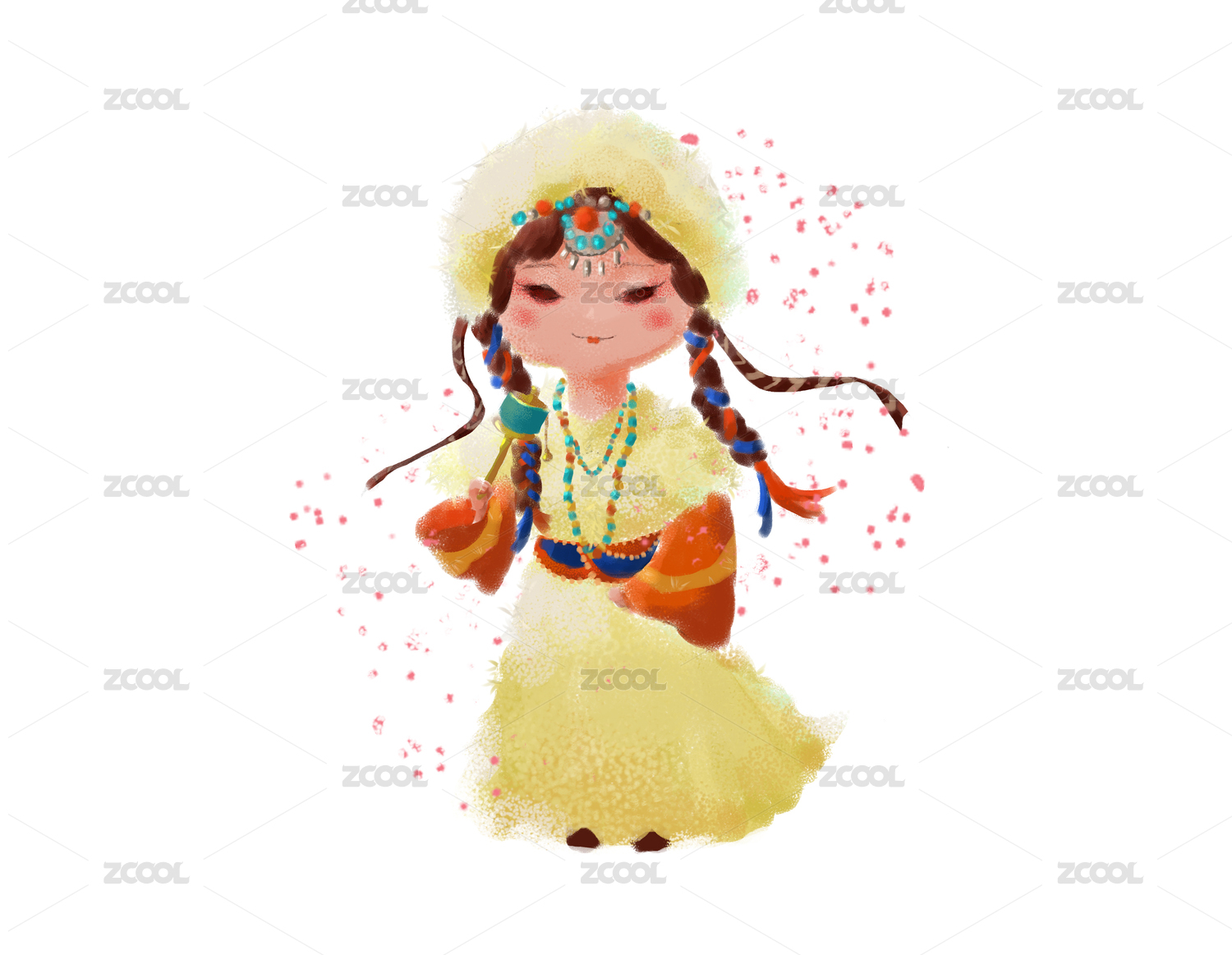 卡通手繪少數(shù)民族壯族人物角色插畫
