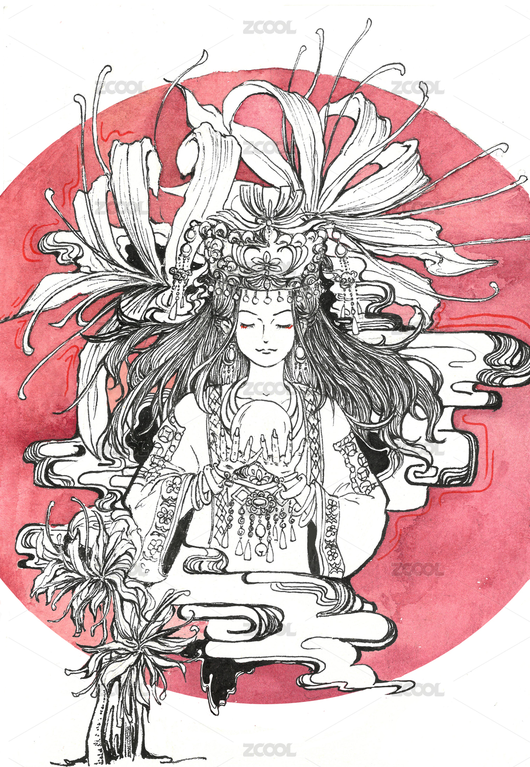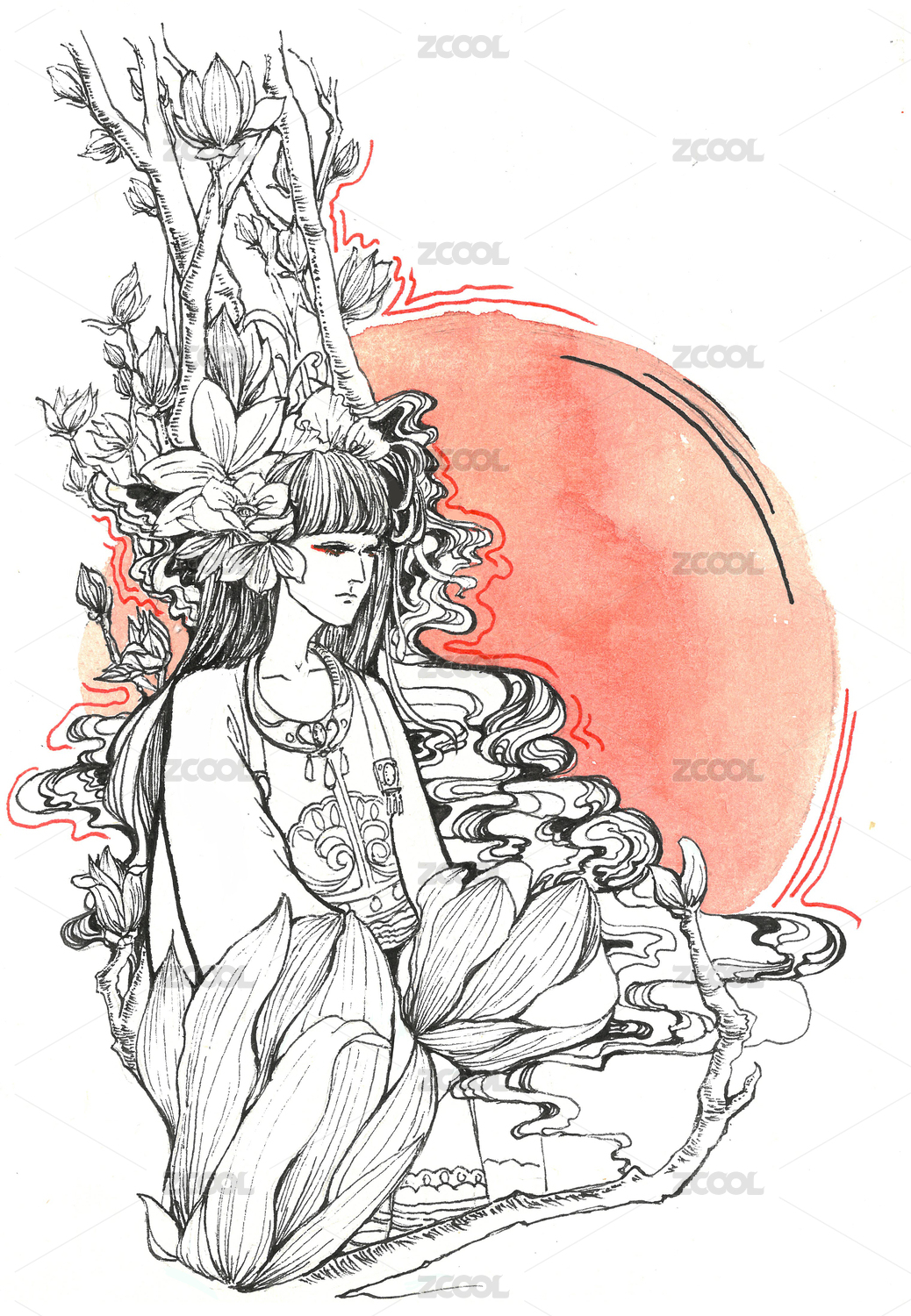 豎版唯美少數(shù)民族卡通可愛少女花瓣