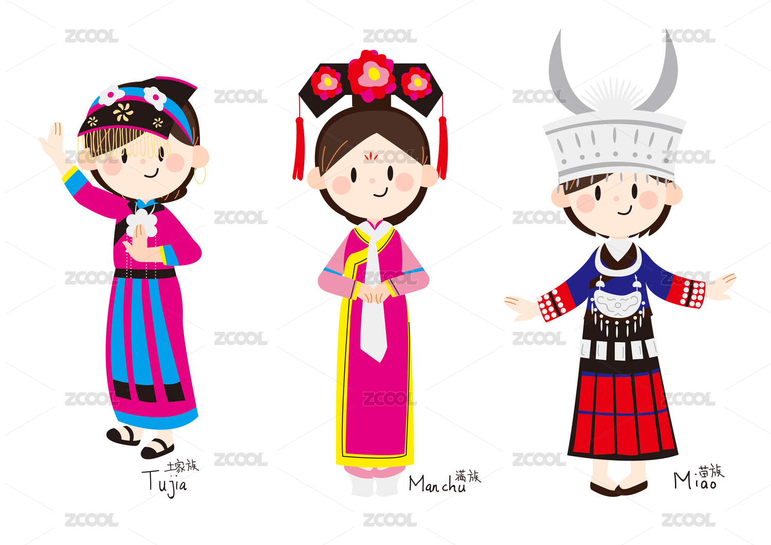矢量少數(shù)民族女孩土家族滿族苗族小數(shù)民族