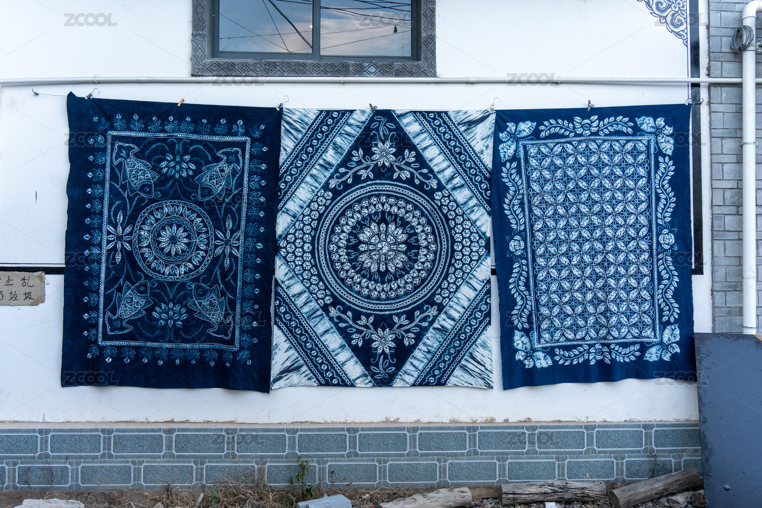 云南麗江少數(shù)民族風(fēng)格手工布毯懸掛在墻上