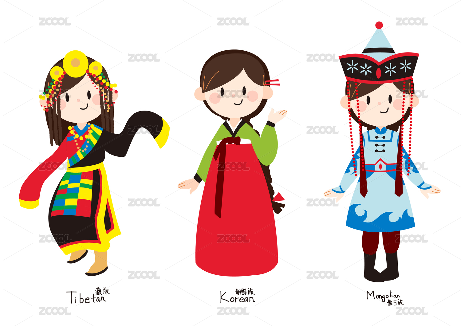 矢量少數(shù)民族女孩藏族朝鮮族蒙古族小數(shù)民族