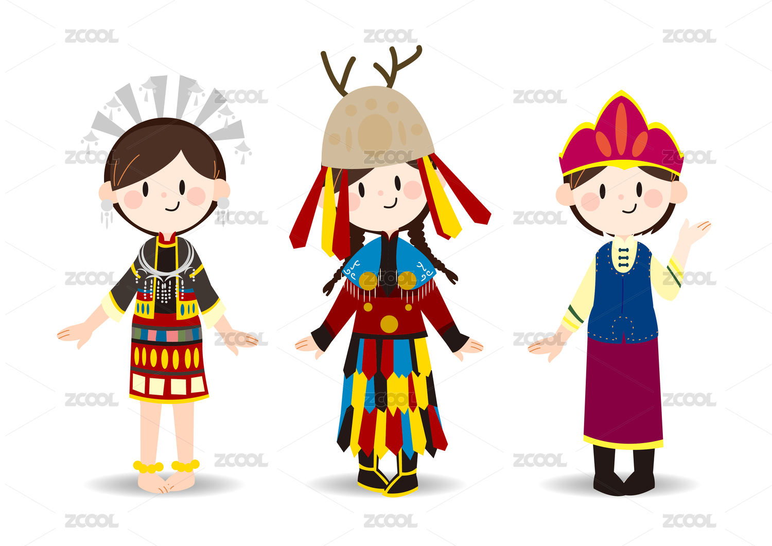 可愛矢量少數(shù)民族傳統(tǒng)服飾