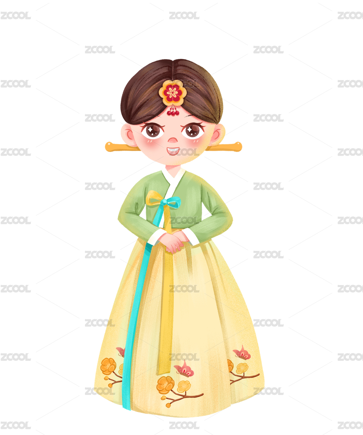 卡通手繪少數(shù)民族朝鮮族傳統(tǒng)文化人物
