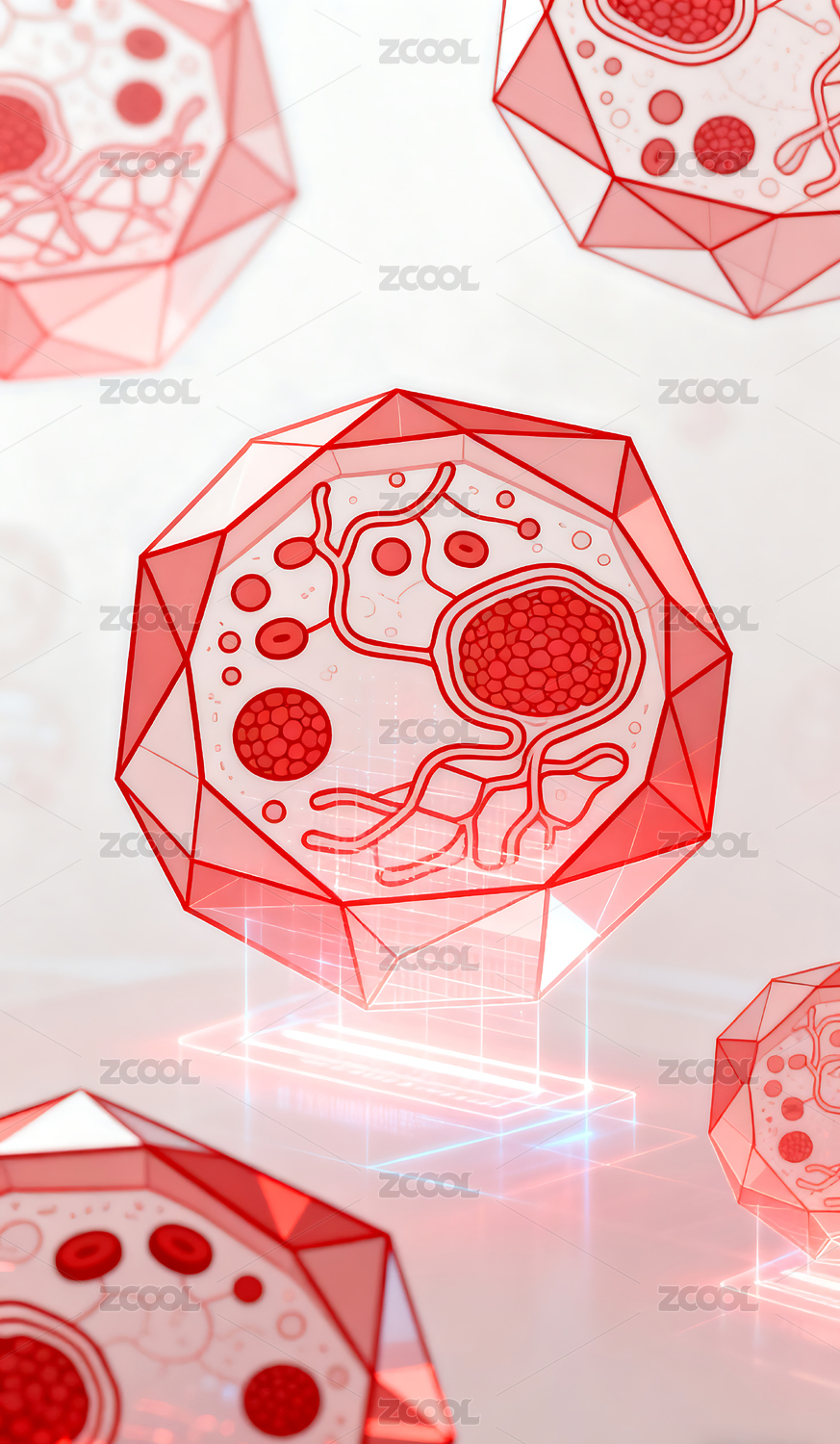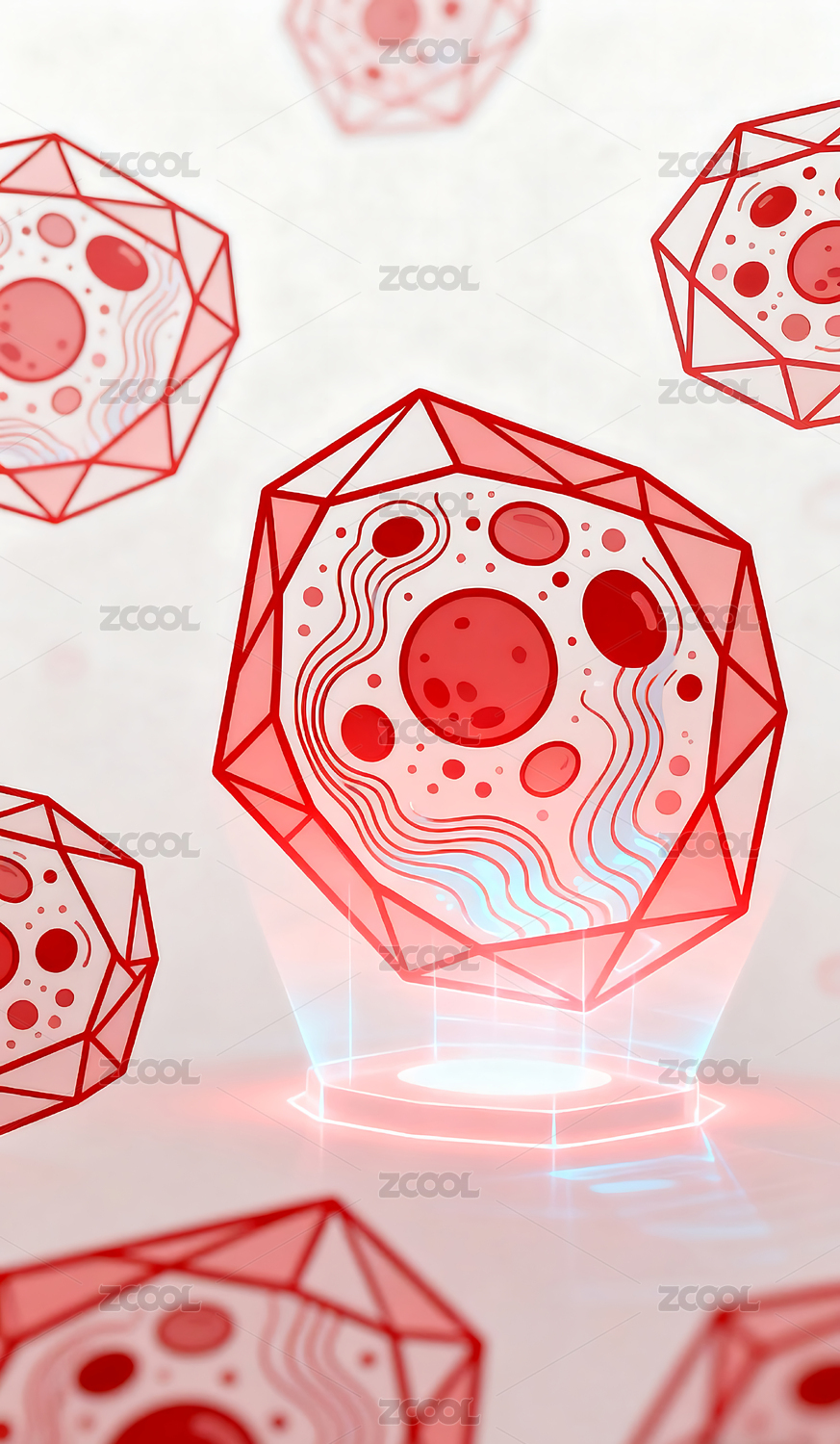 紅色商務科技醫(yī)療抽象細胞結構淺色背景
