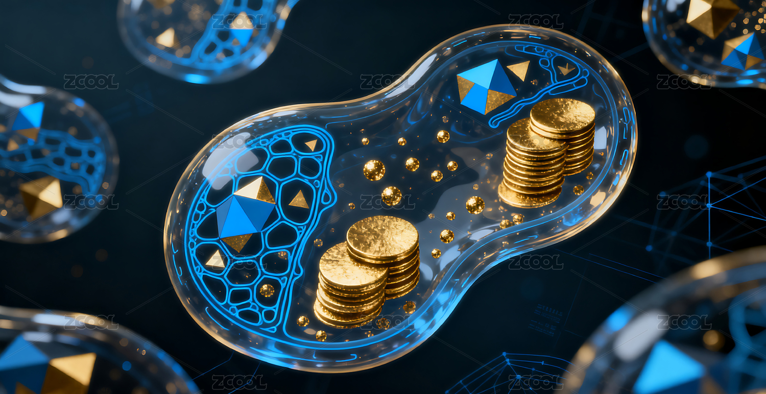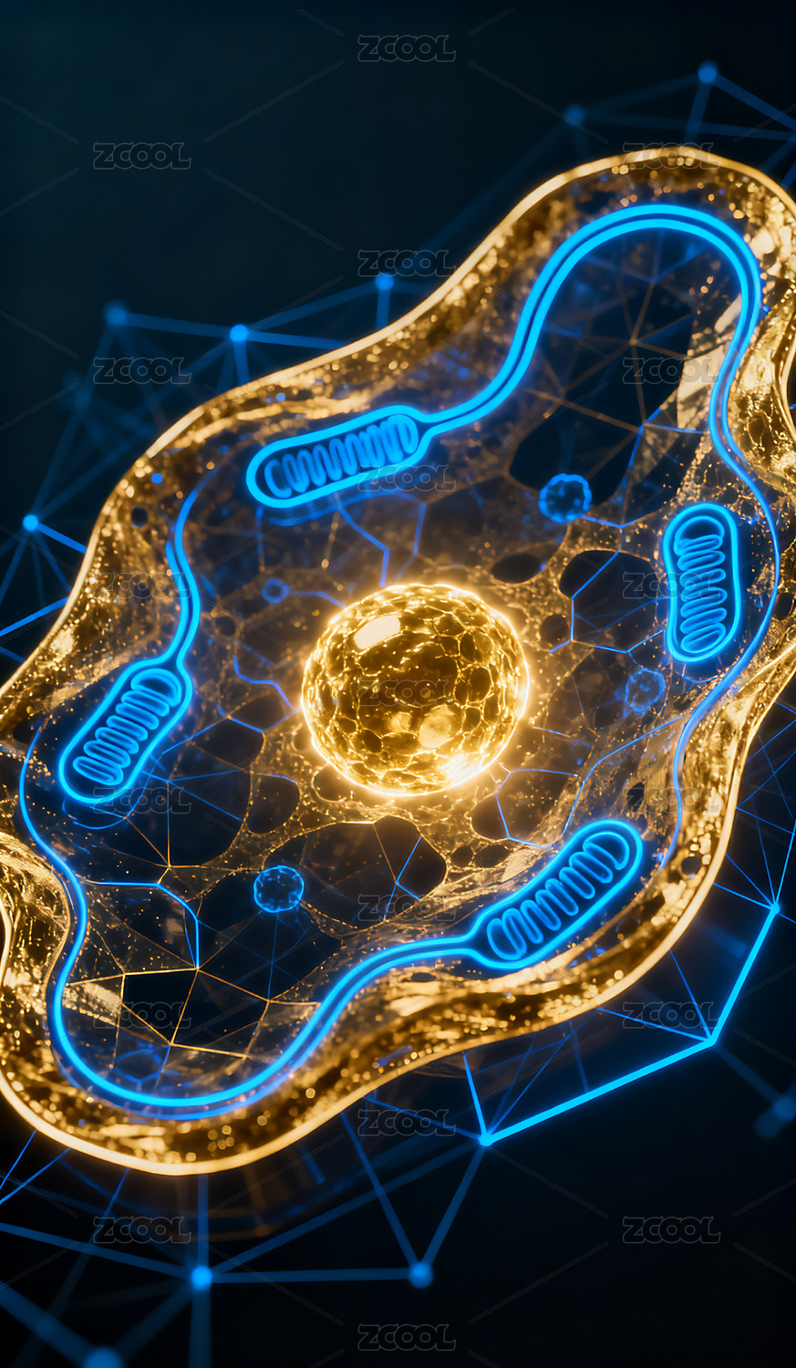 藍金色商務科技醫(yī)療抽象細胞結構深色背景