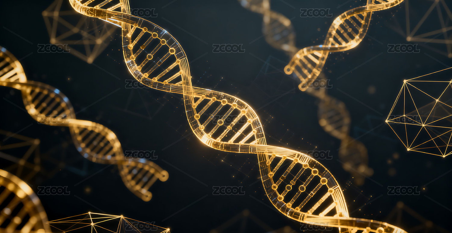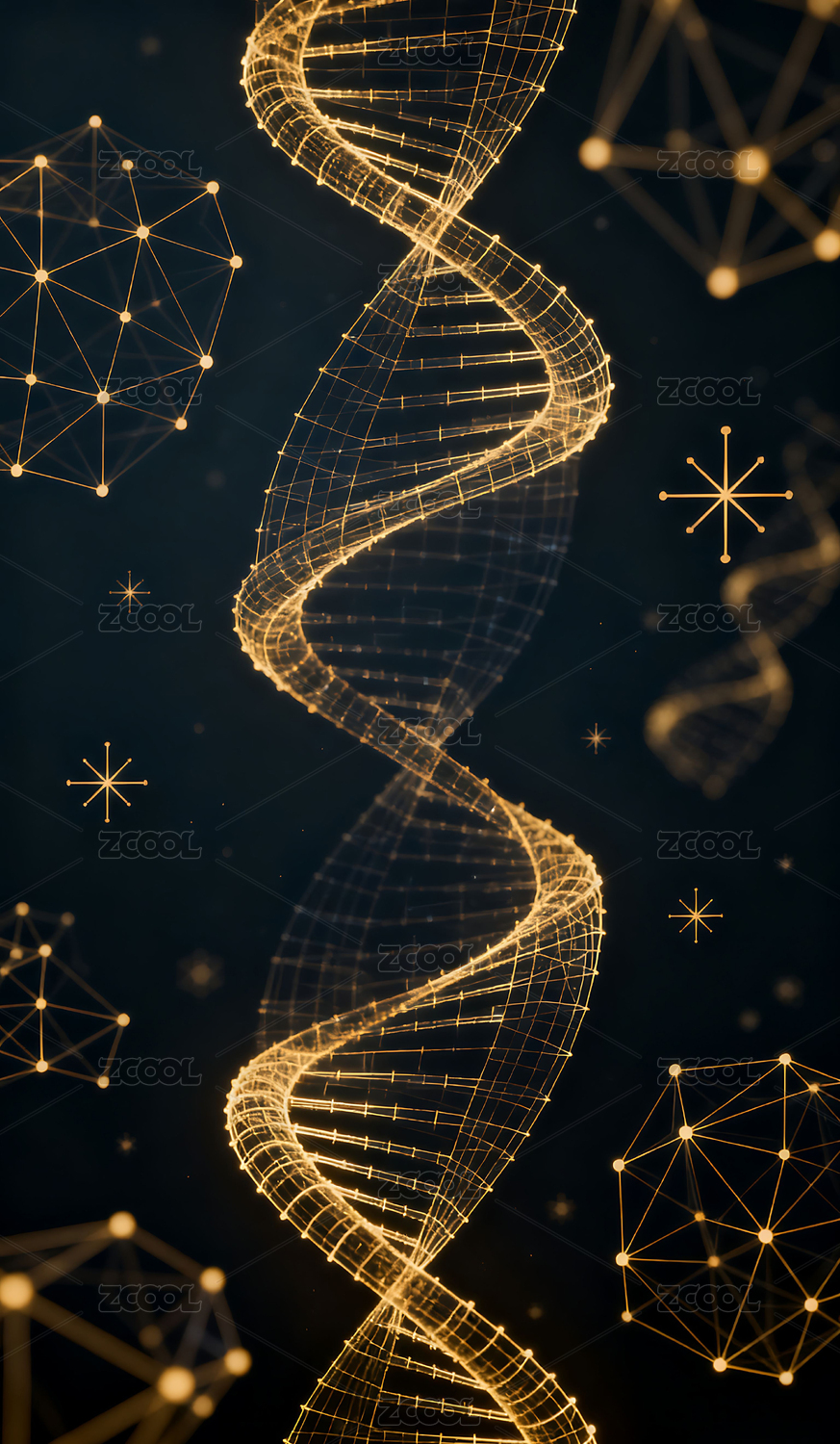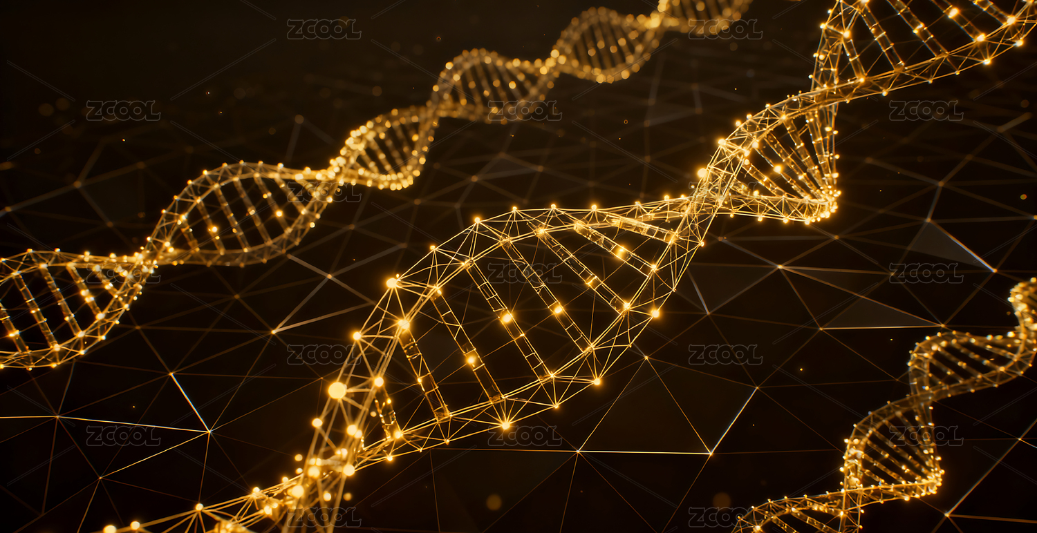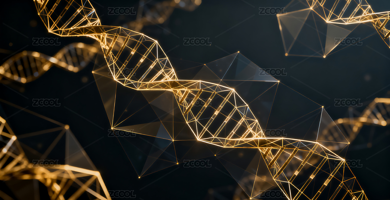 金色商務科技醫(yī)療基因鏈DNA深色背景