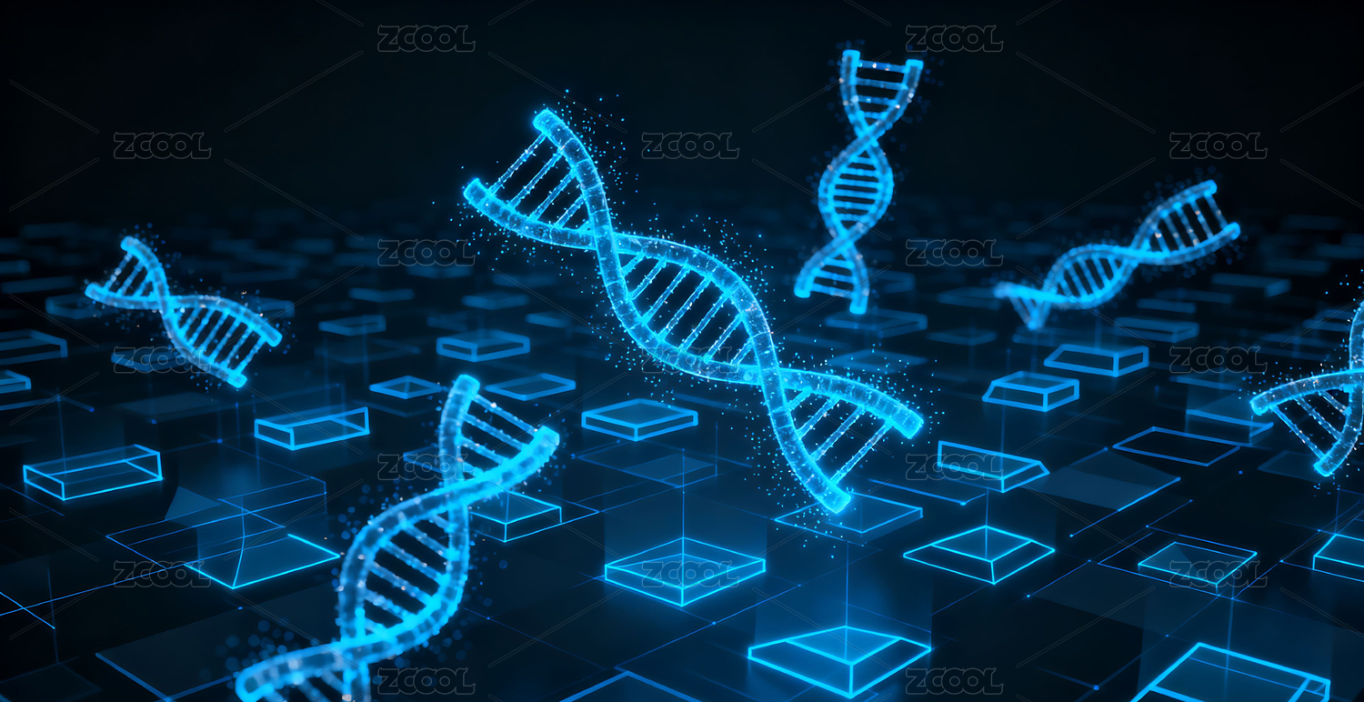 藍色商務科技醫(yī)療基因鏈DNA深色背景