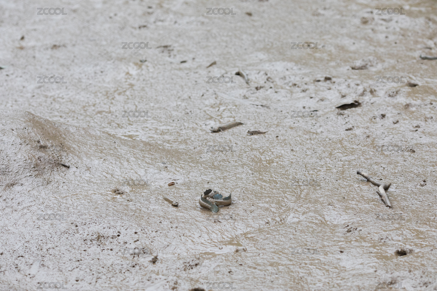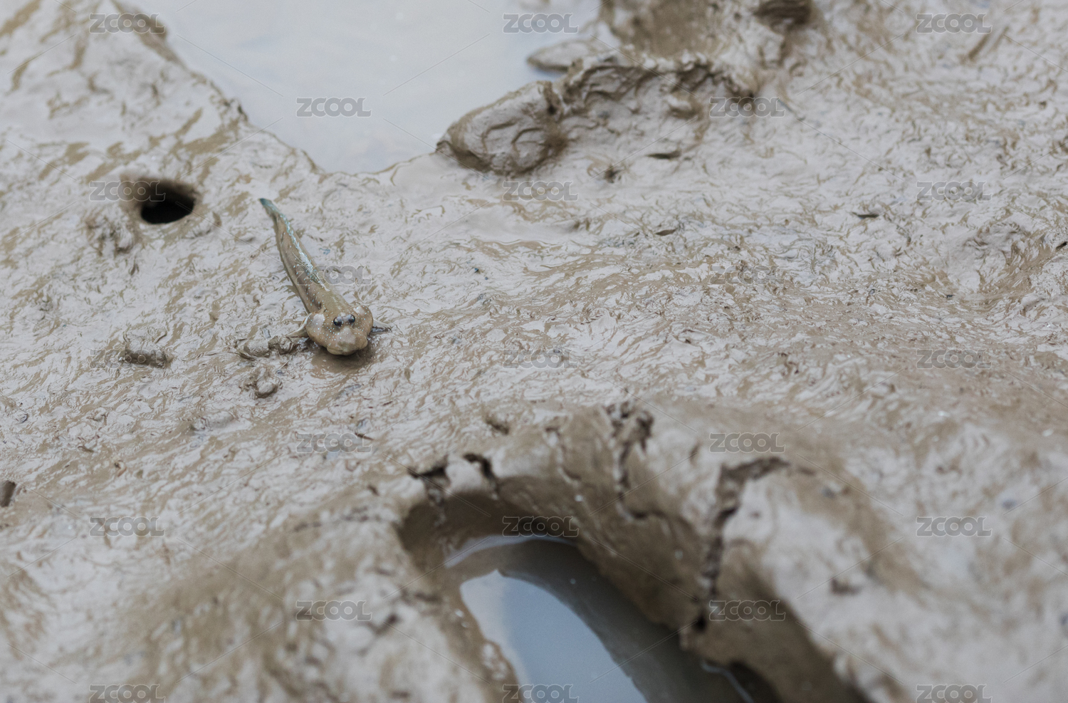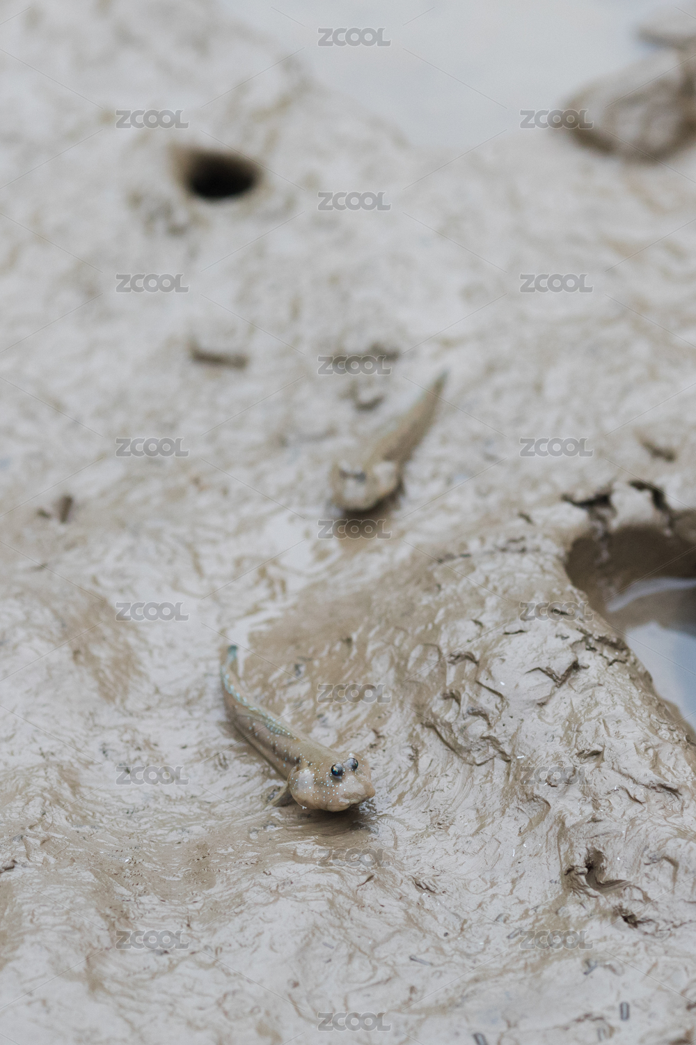 廣東珠海淇澳紅樹林保護區(qū)正在出洞的大彈涂魚
