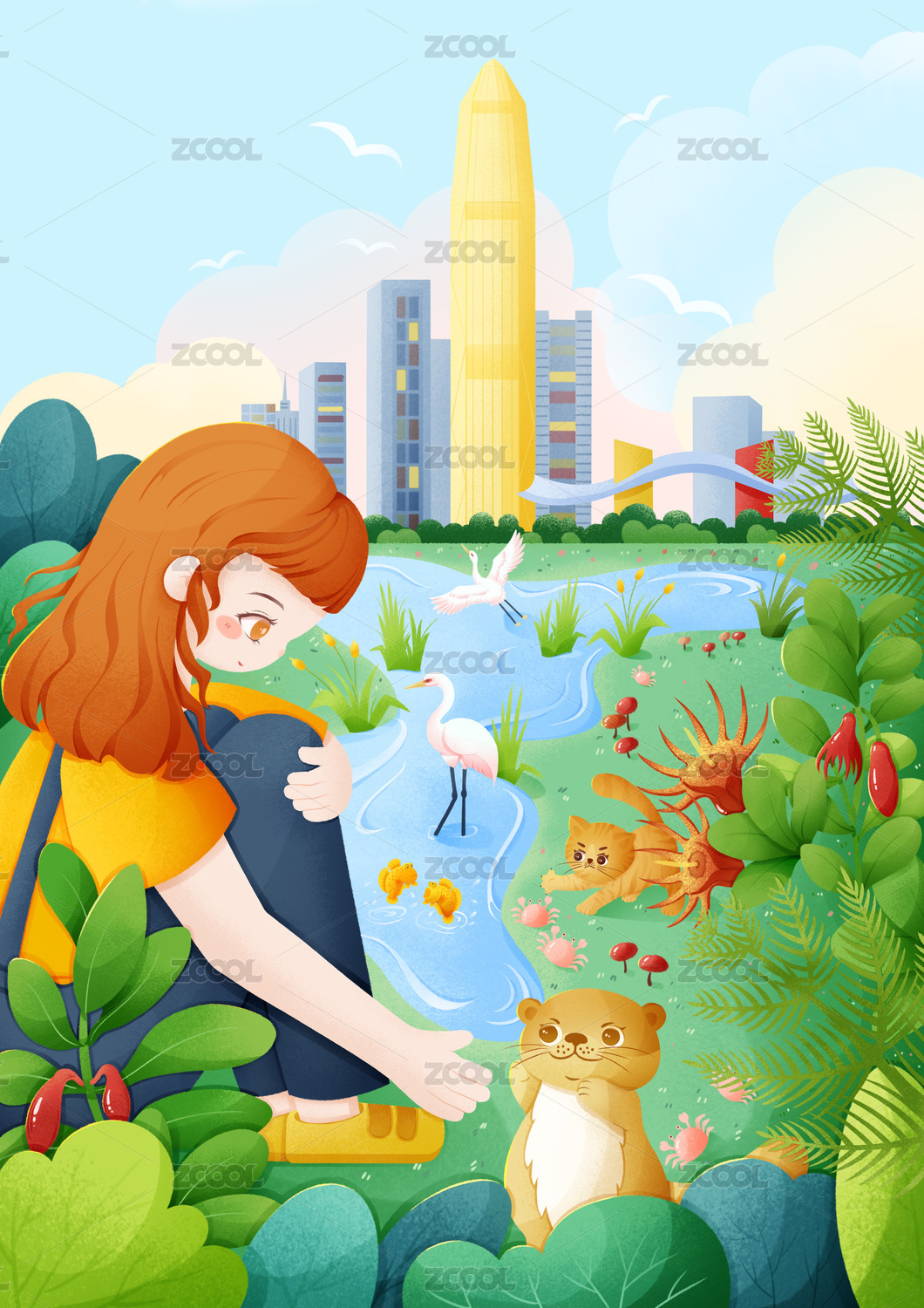 紅樹林生態(tài)環(huán)保扁平肌理插畫-深圳