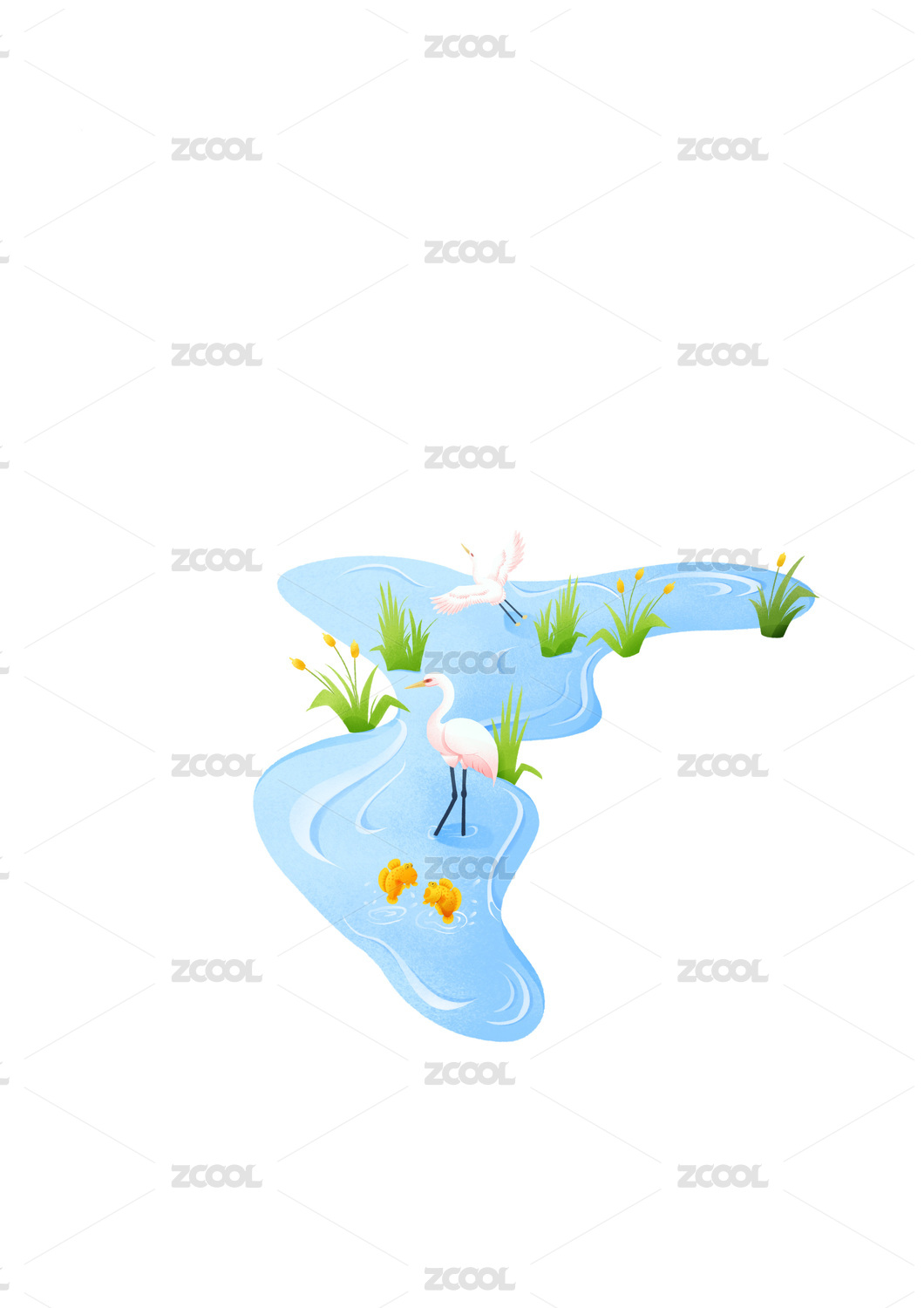 紅樹林生態(tài)環(huán)保插畫-元素圖白鷺彈涂魚濕地
