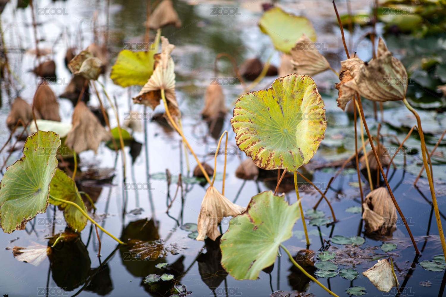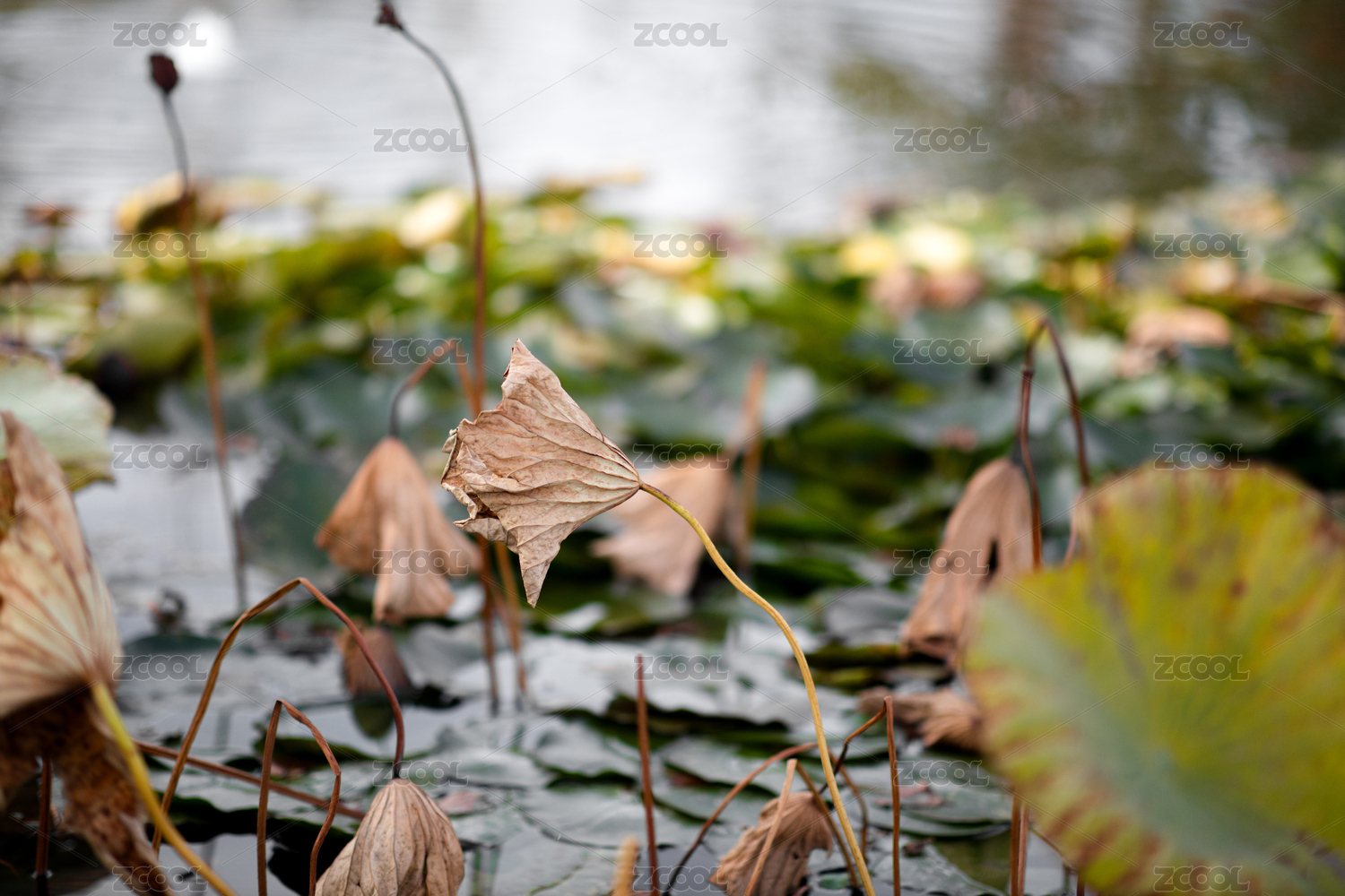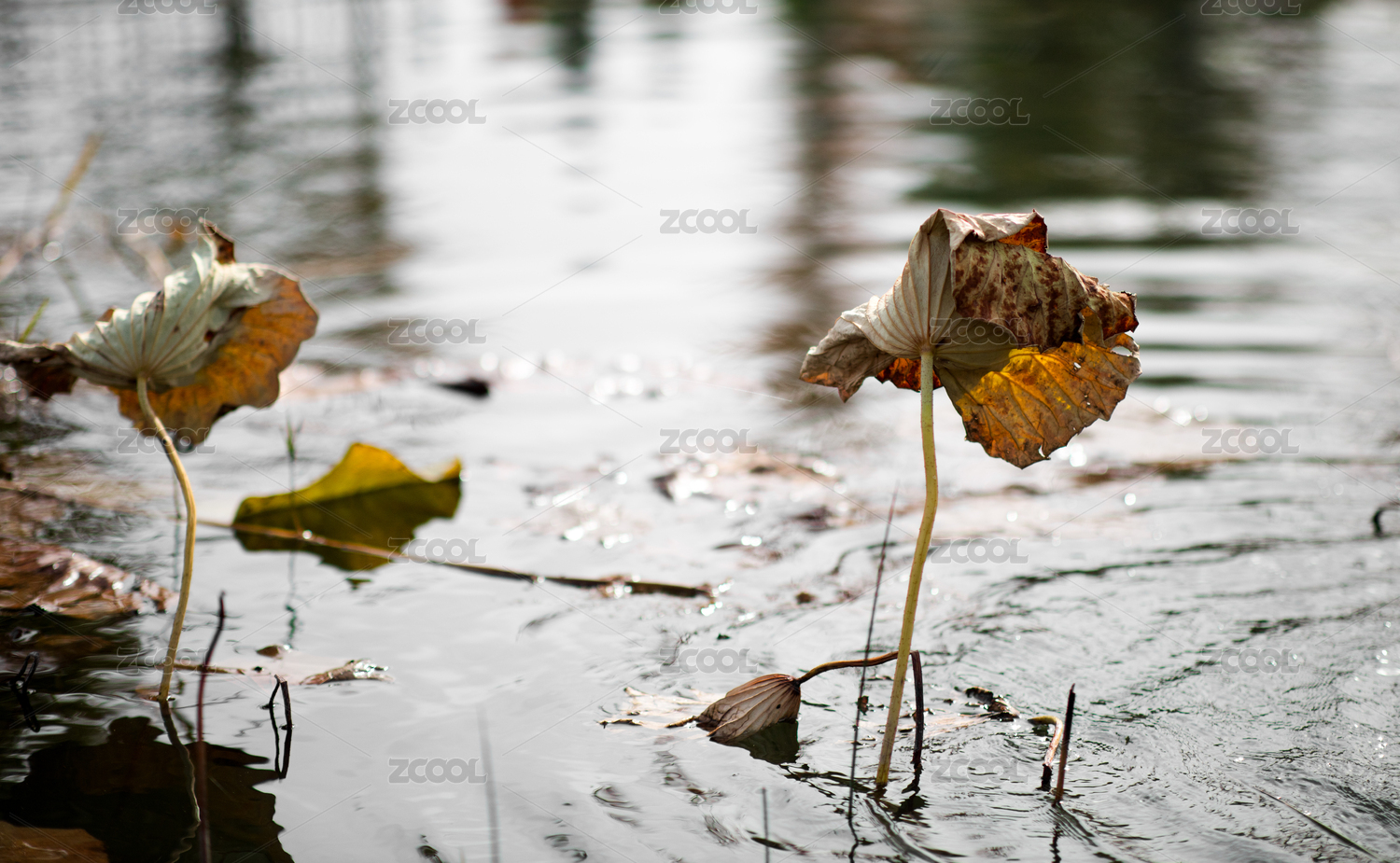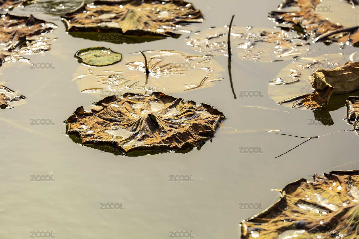 深秋時(shí)節(jié)水面上枯萎的荷葉