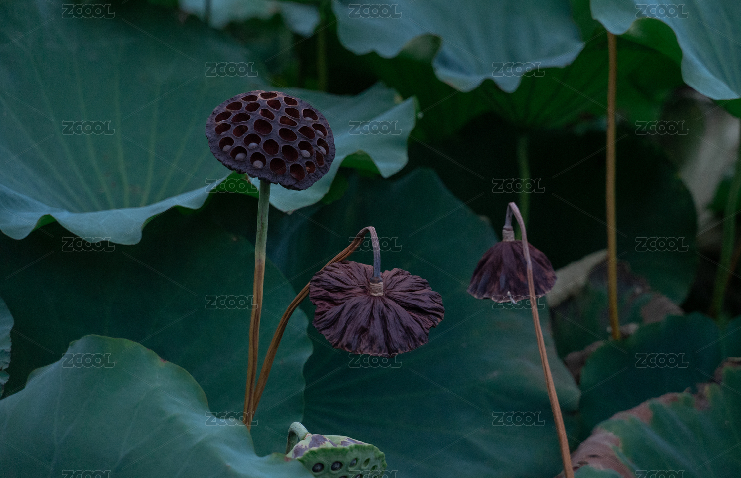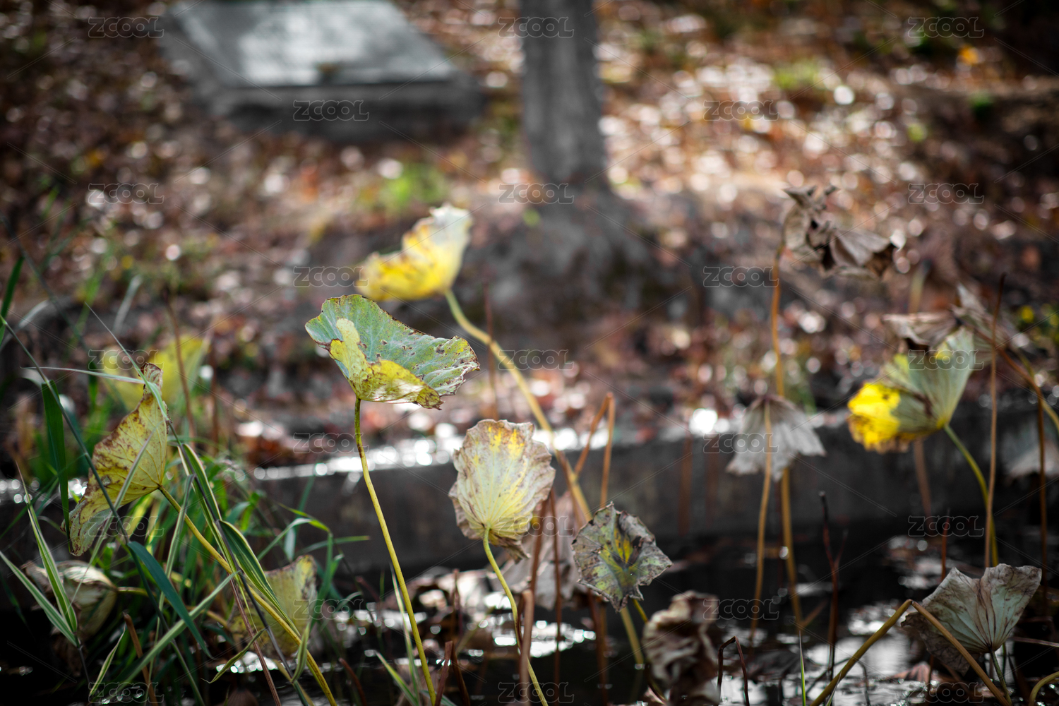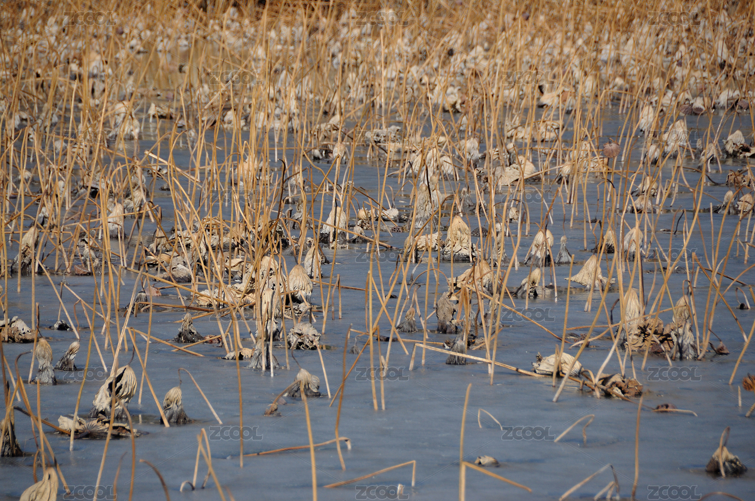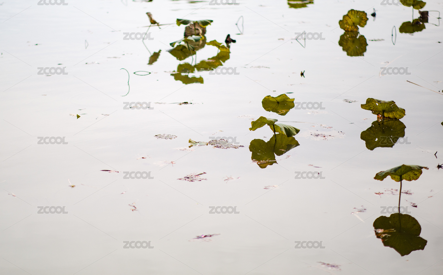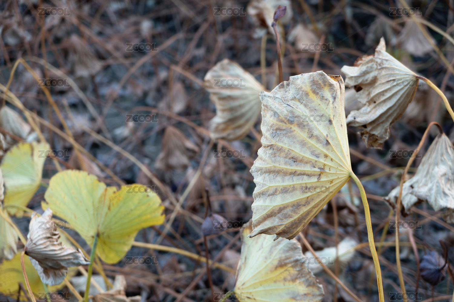 深秋時(shí)節(jié)水面上枯萎的荷葉