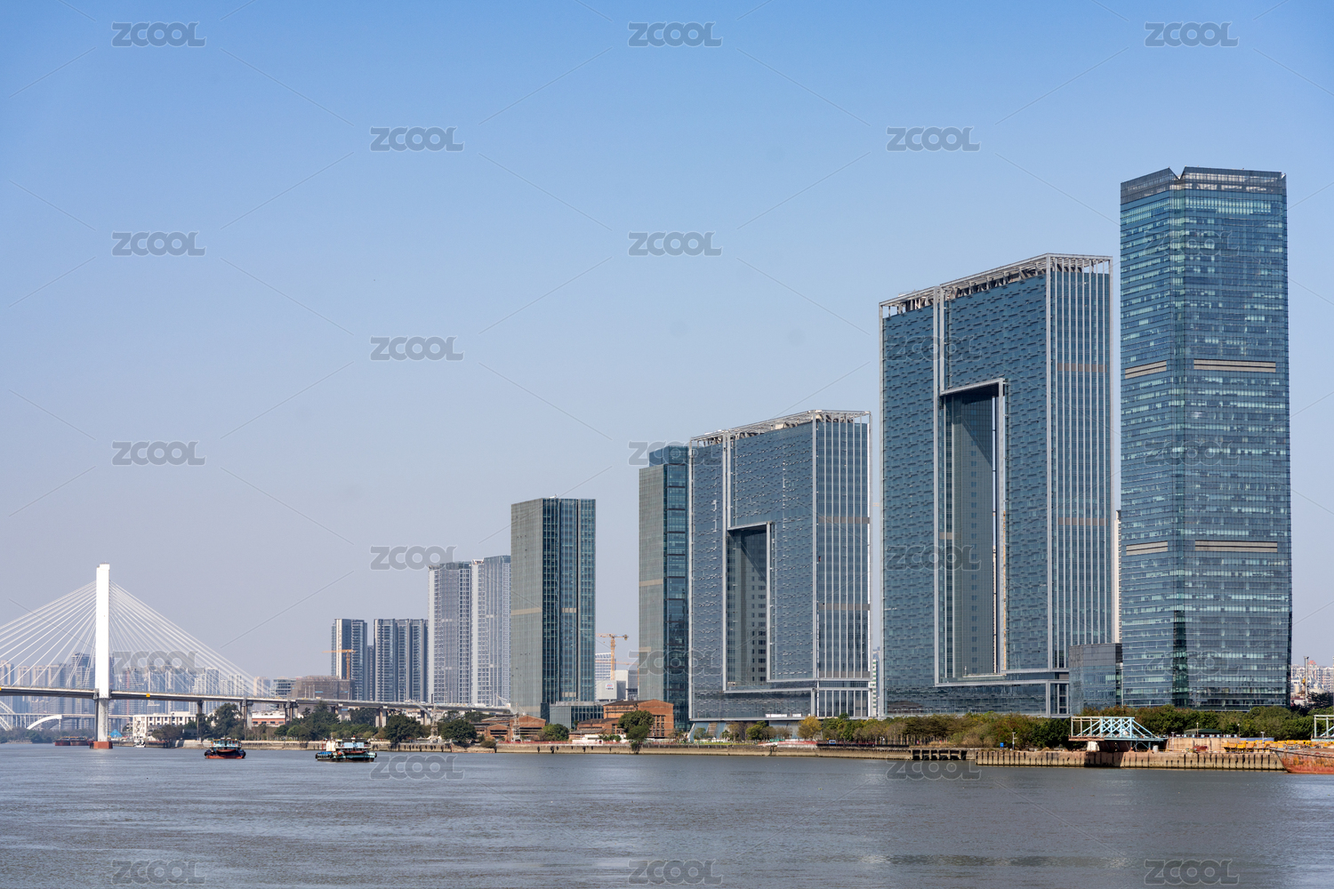 珠江邊的廣州之窗商務(wù)港建筑風(fēng)光