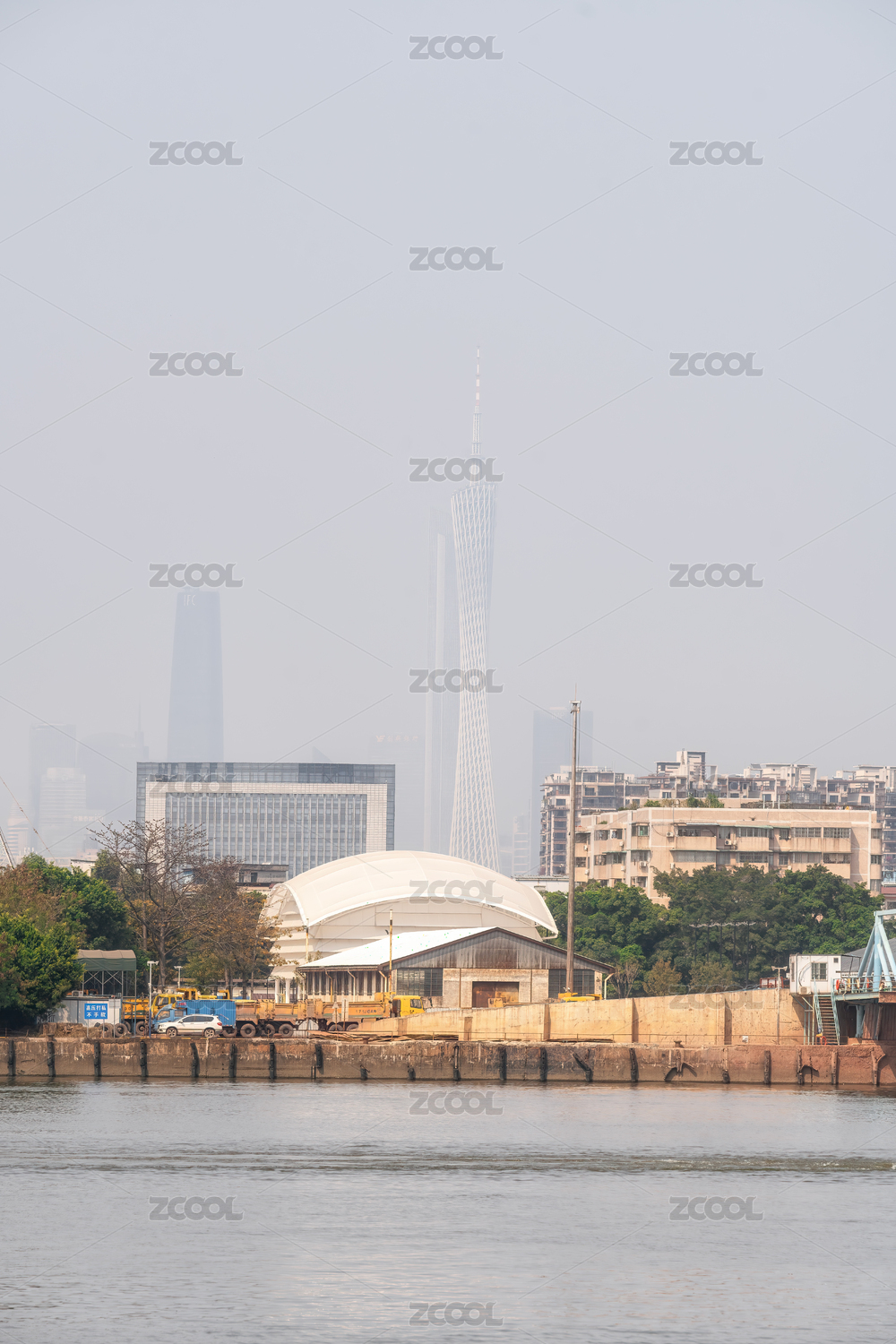 廣東珠江邊的廣州之窗商務(wù)港建筑風(fēng)光