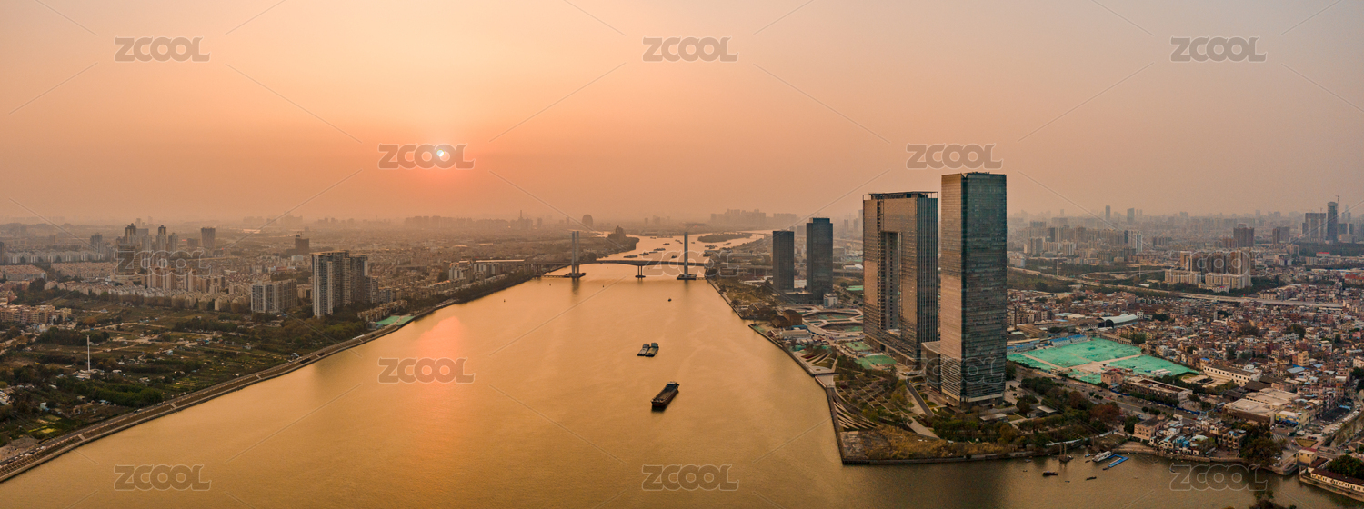 珠江新光大橋與廣州之窗商務(wù)港城市風(fēng)光全景長圖 _HQC1994-2002
