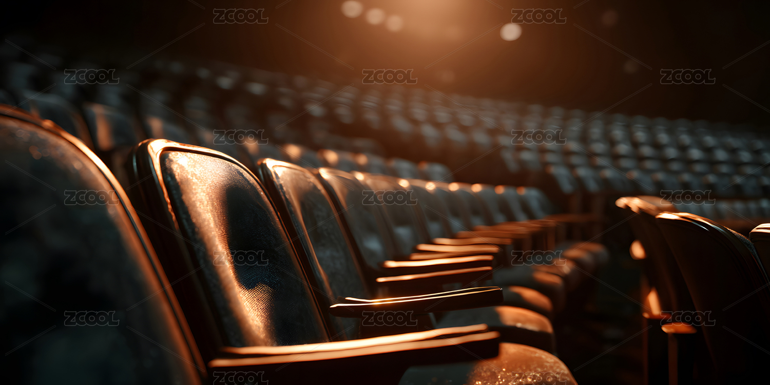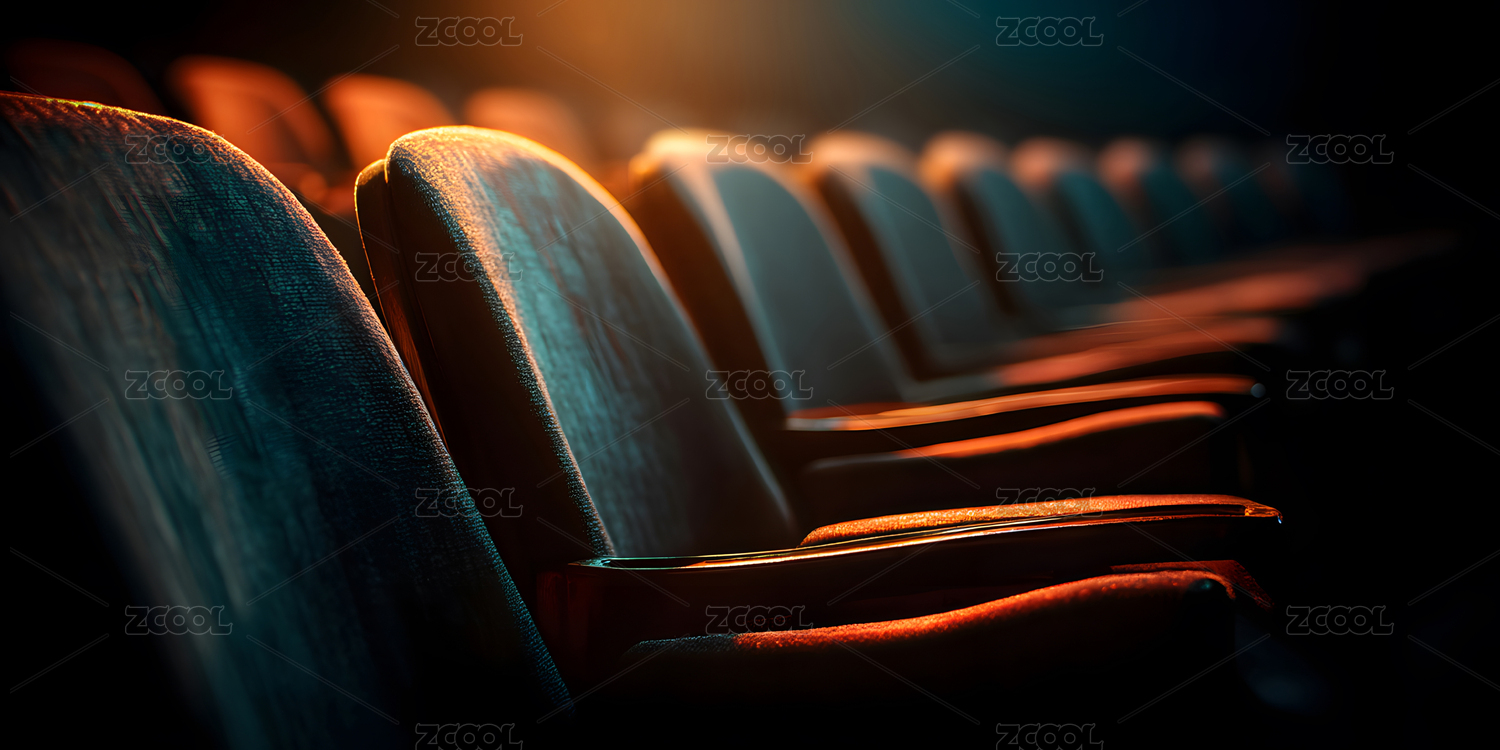 電影院演出廳內(nèi)幾排紅色的無(wú)人座椅