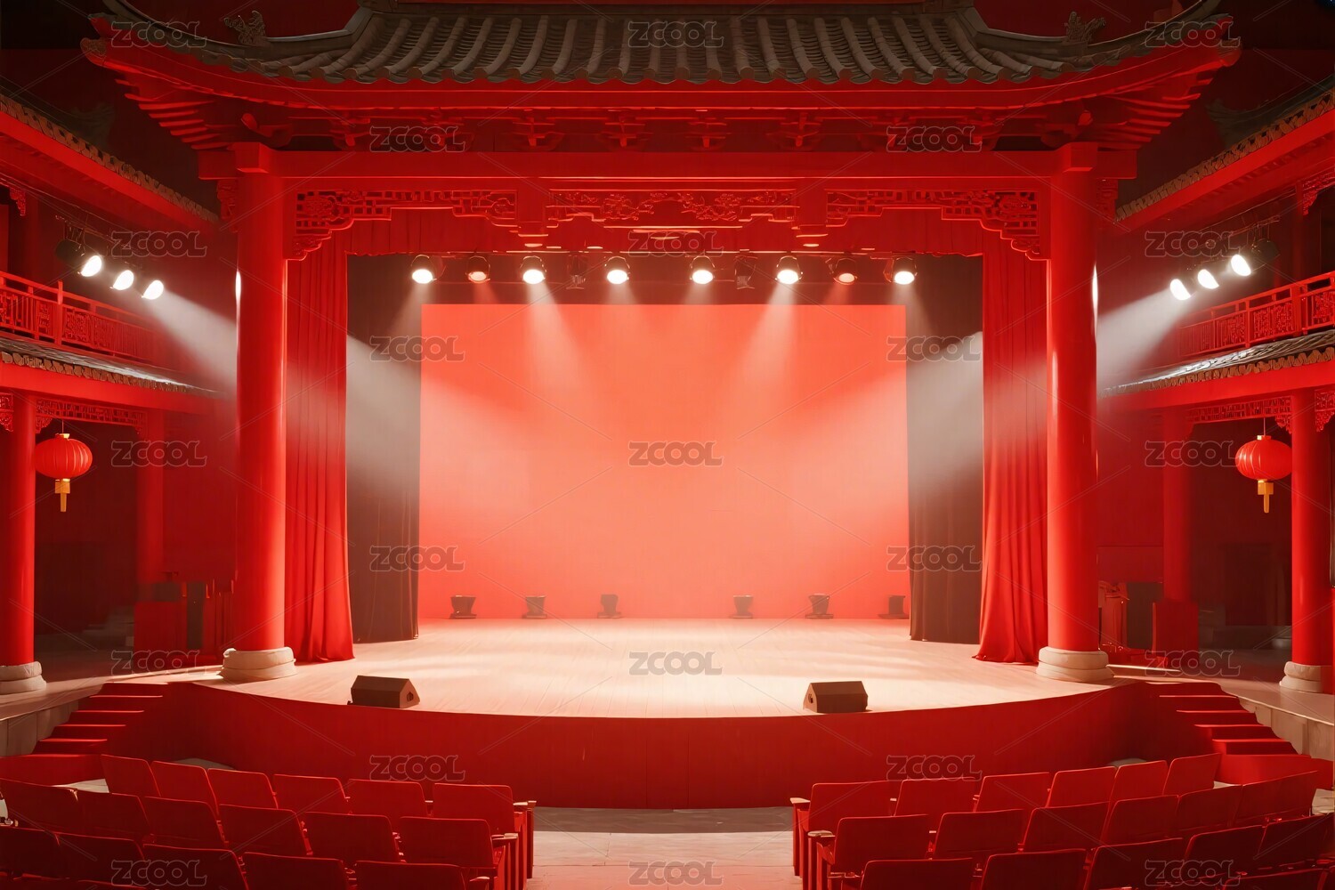 中式紅色舞臺(tái)場(chǎng)景