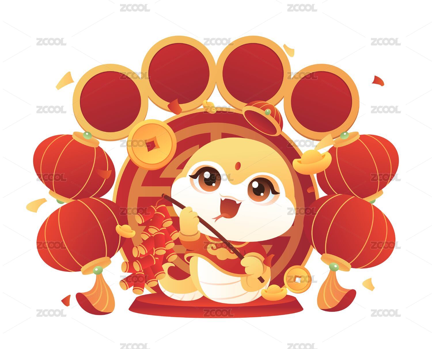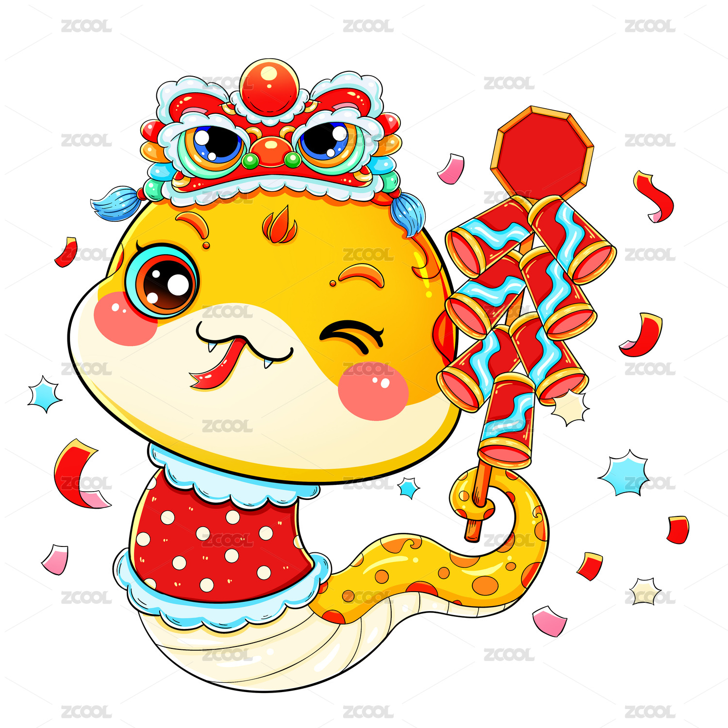 國潮春節(jié)新年可愛卡通鞭炮蛇金蛇插畫