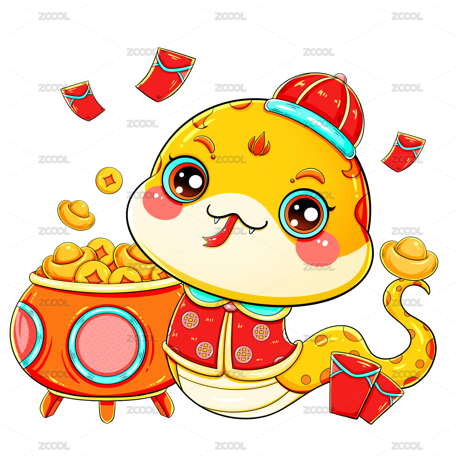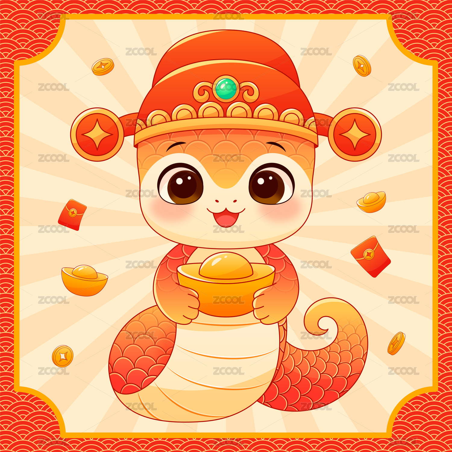 國潮春節(jié)新年可愛卡通紅包蛇金蛇插畫
