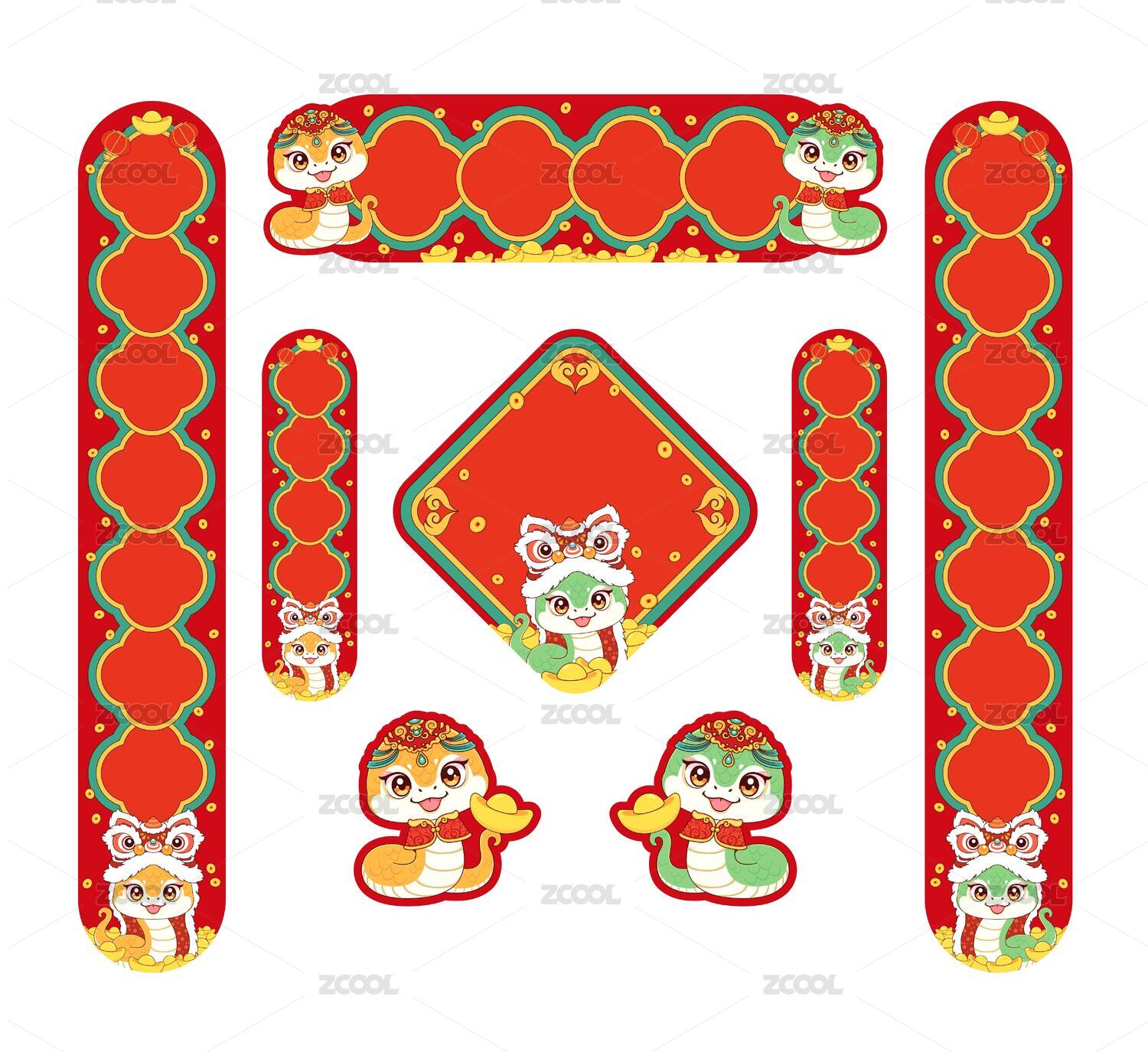 蛇年卡通春節(jié)對(duì)聯(lián)