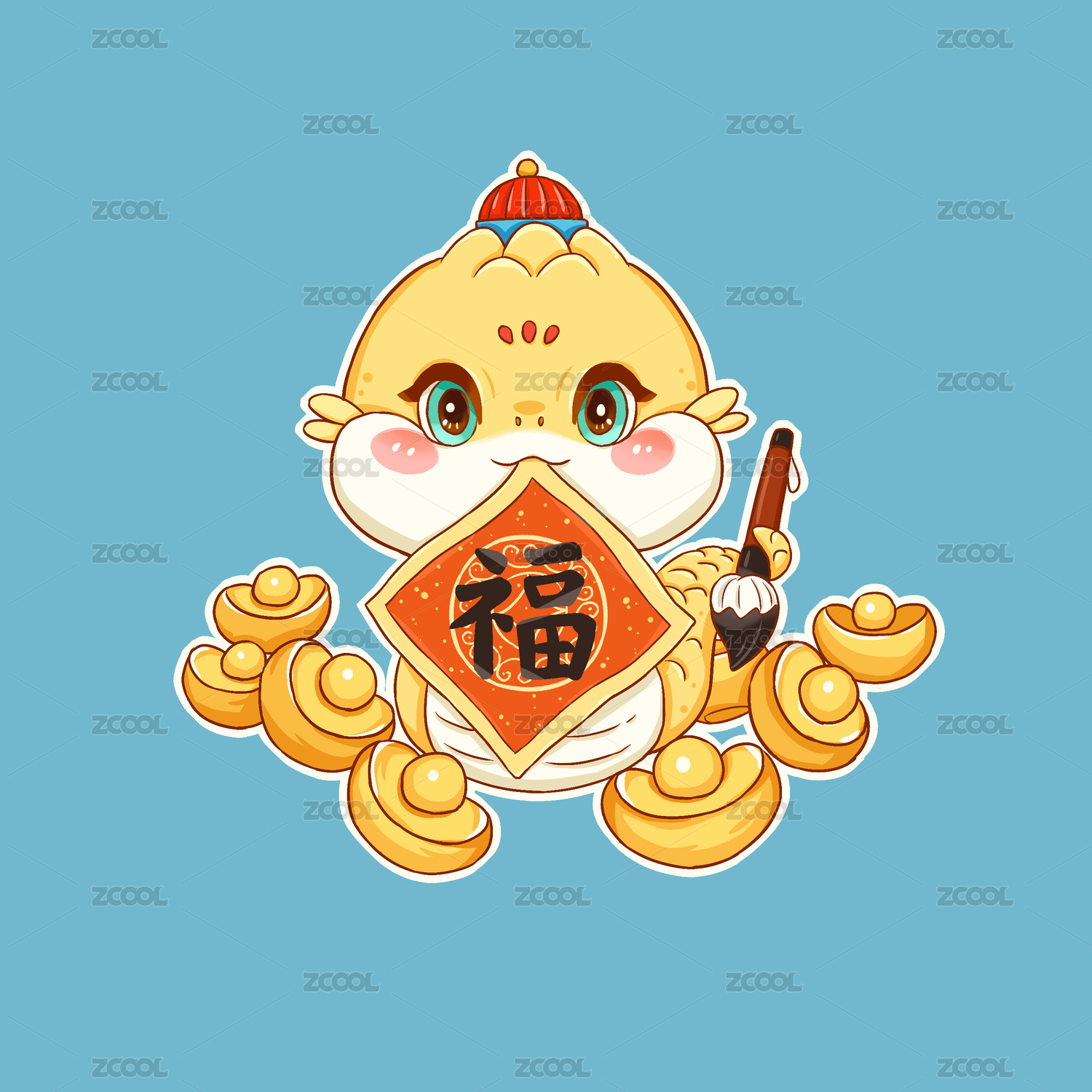 國潮春節(jié)新年可愛卡通斗方蛇金蛇插畫