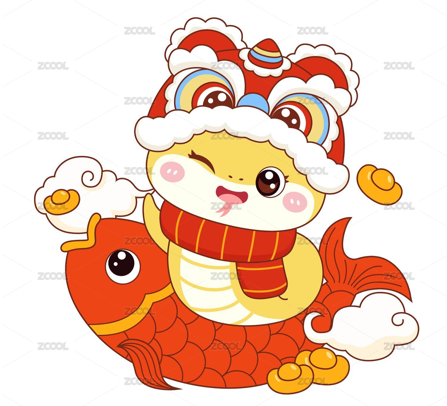 國潮春節(jié)新年可愛卡通錦鯉蛇金蛇插畫