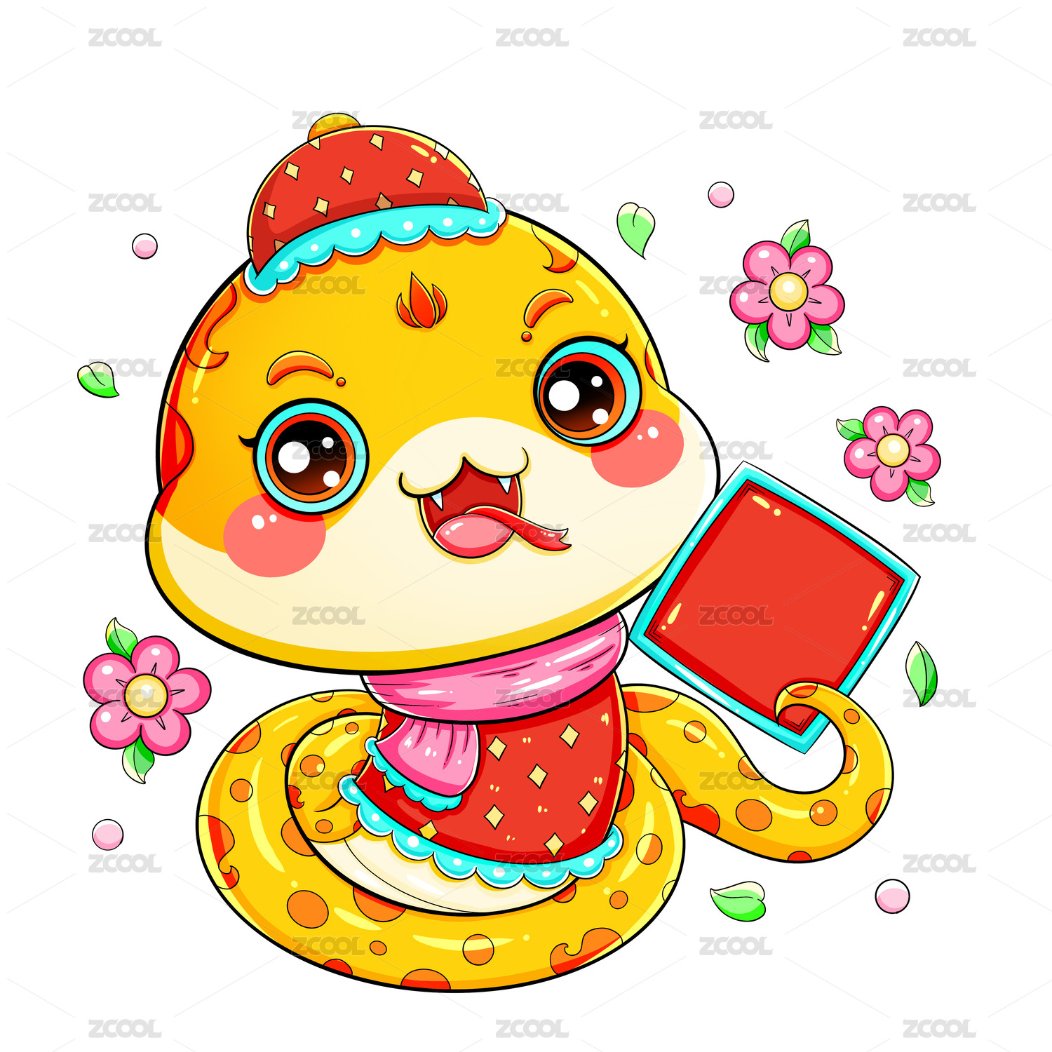 國潮春節(jié)新年卡通蛇2025數(shù)字插畫
