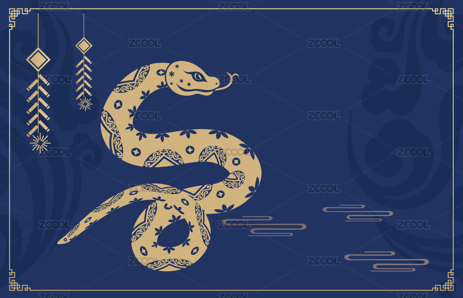 傳統(tǒng)的中國蛇年插圖矢量2025年