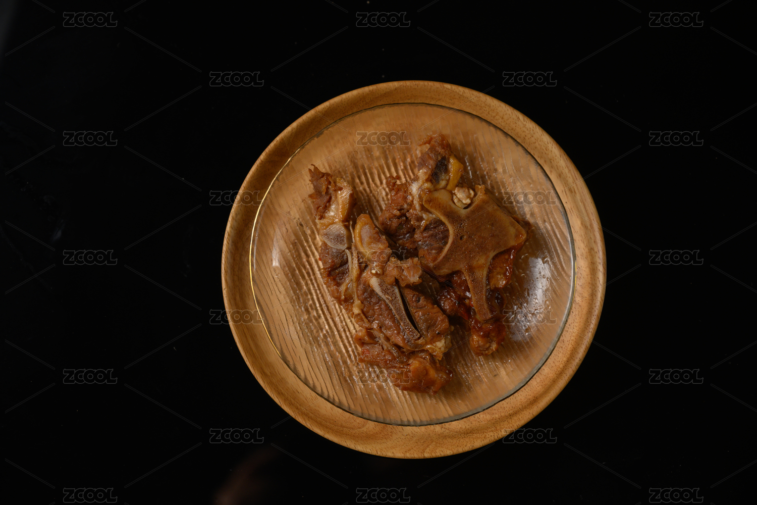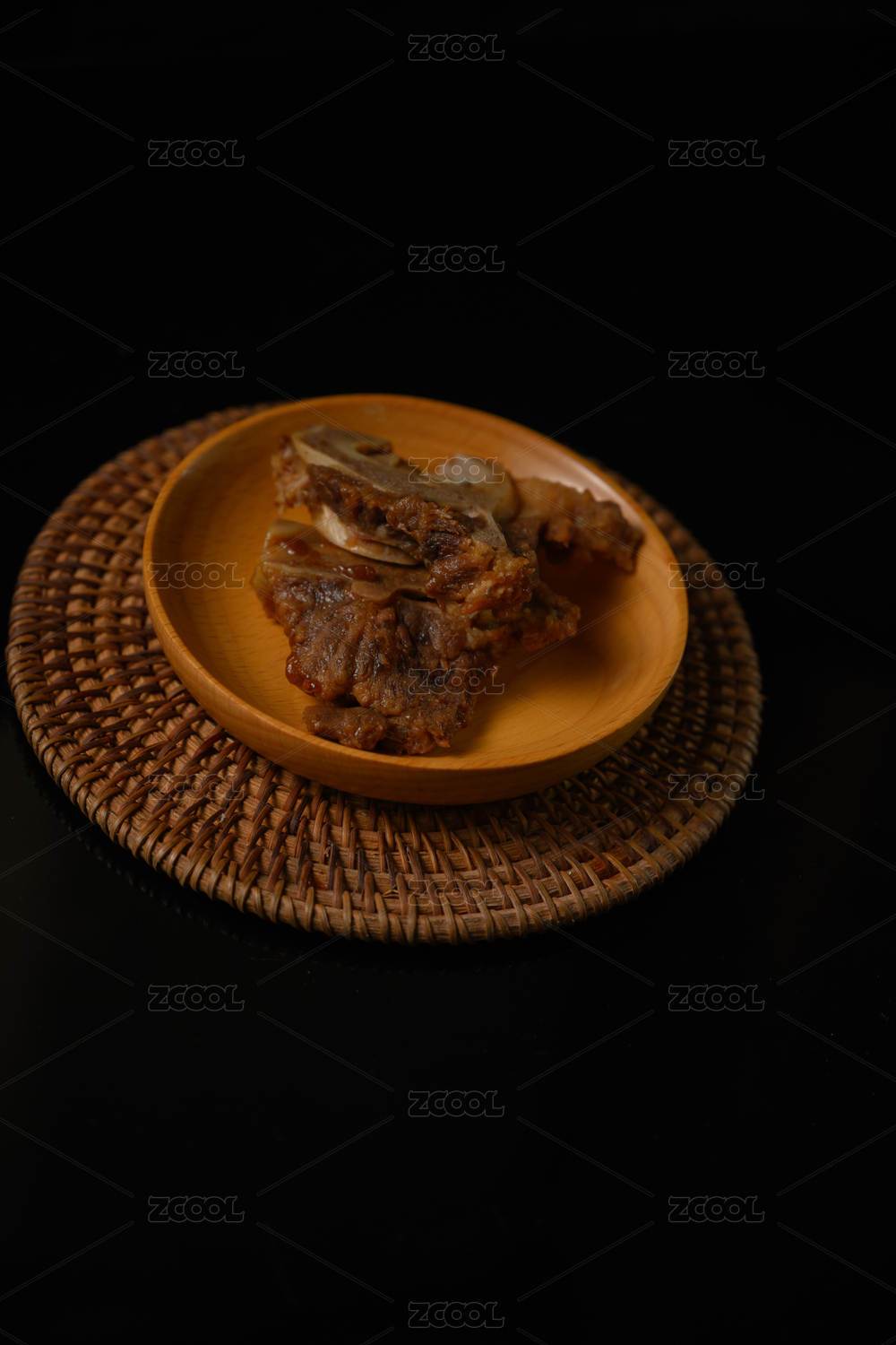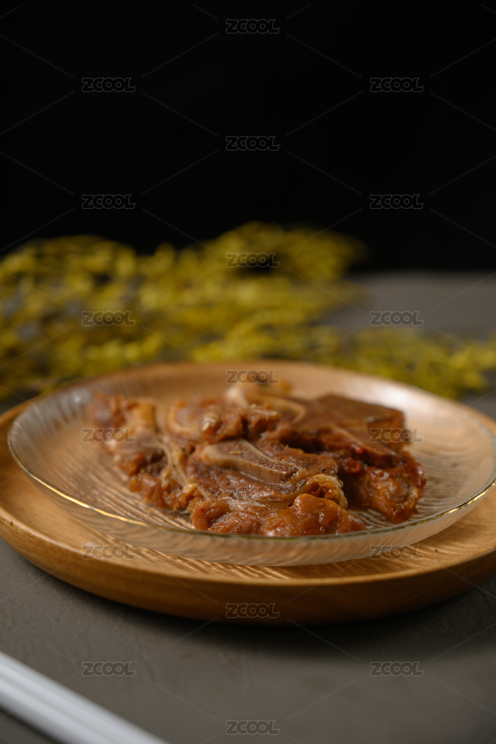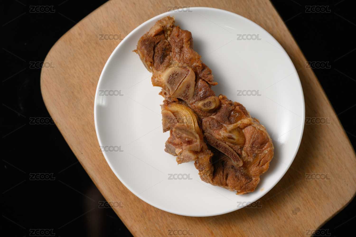 桌面上的盤子里的美味可口的醬骨頭