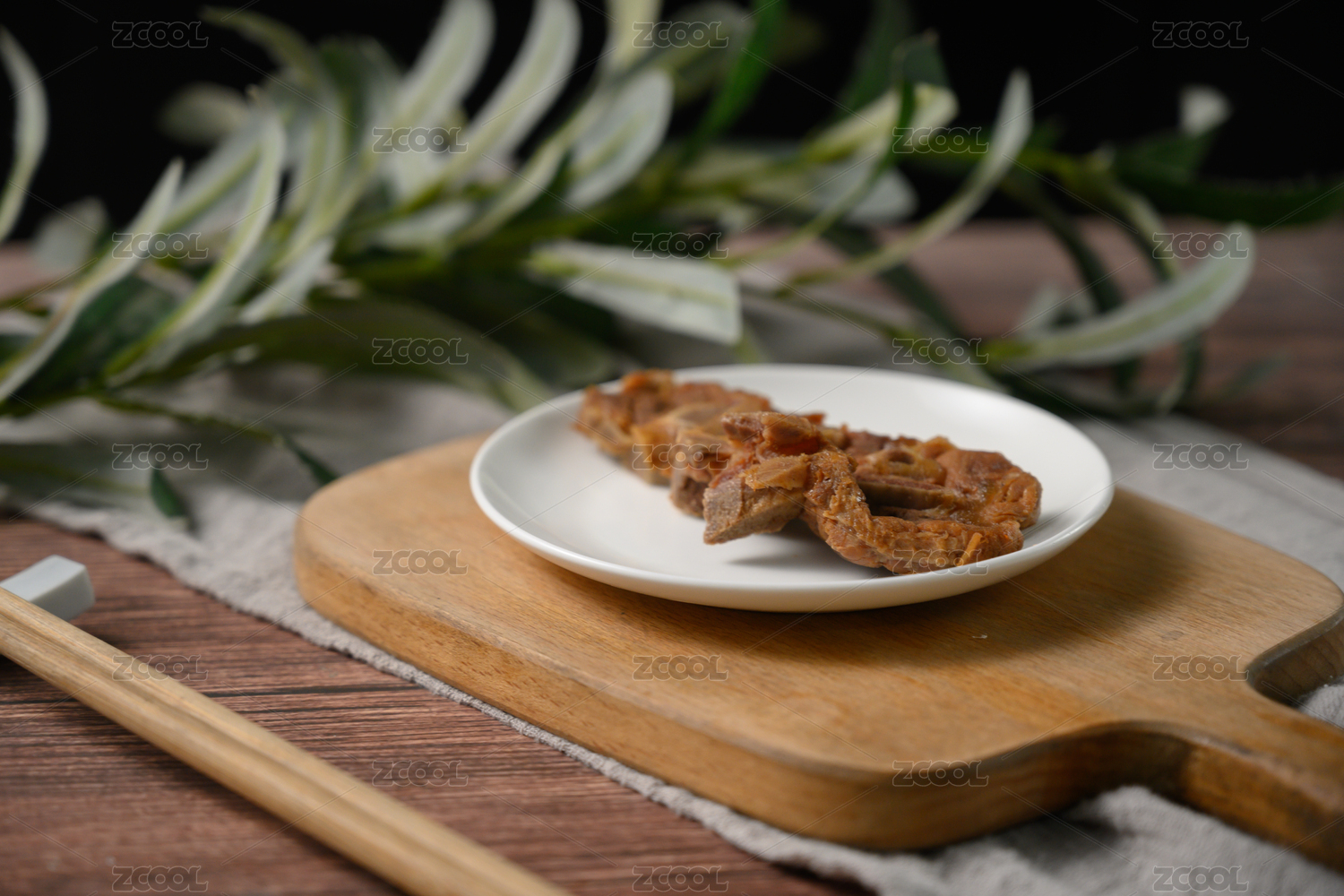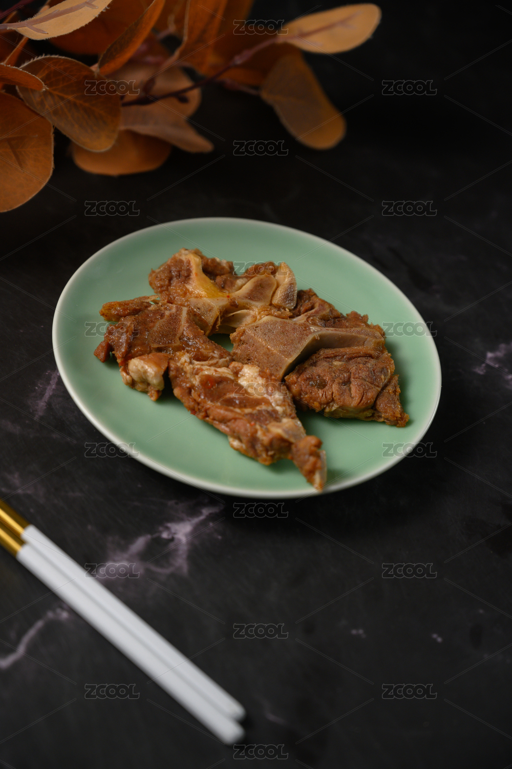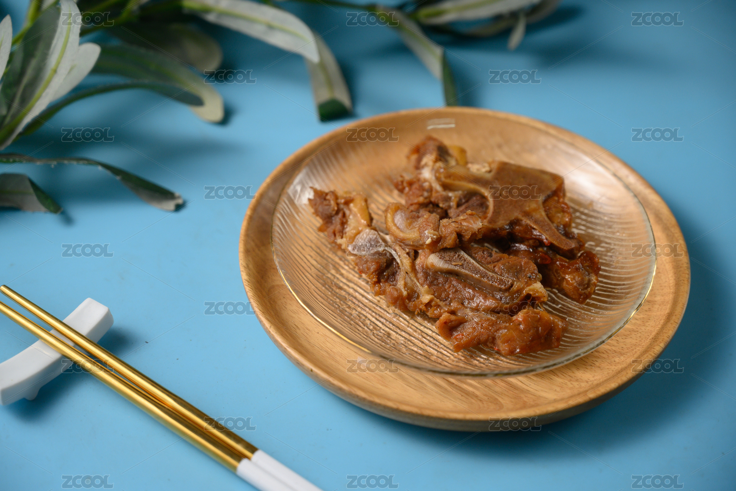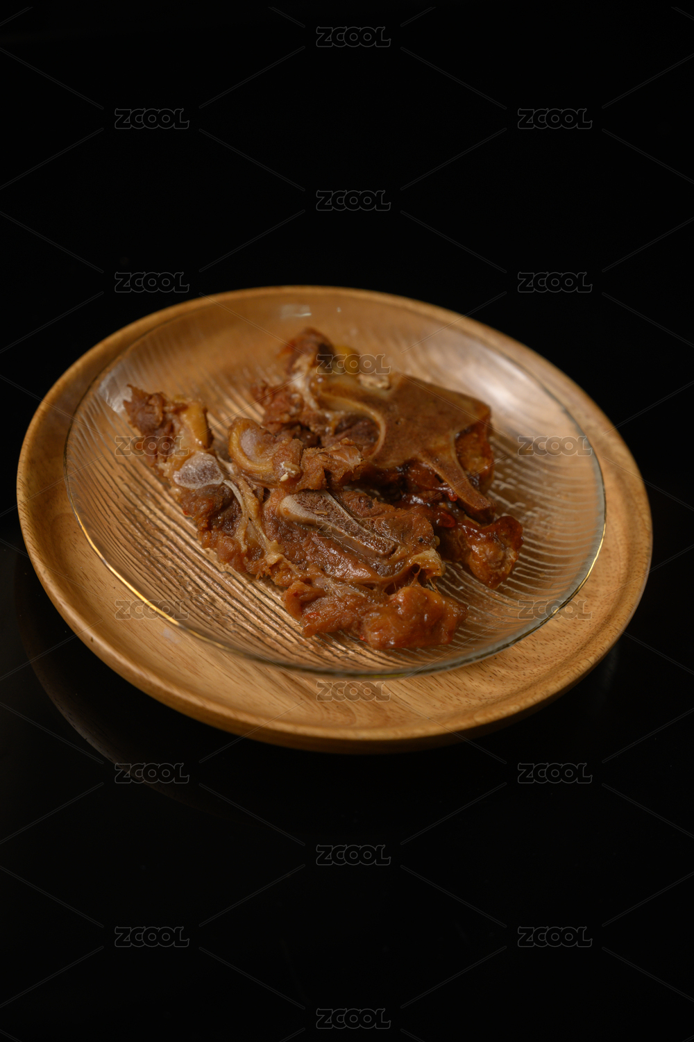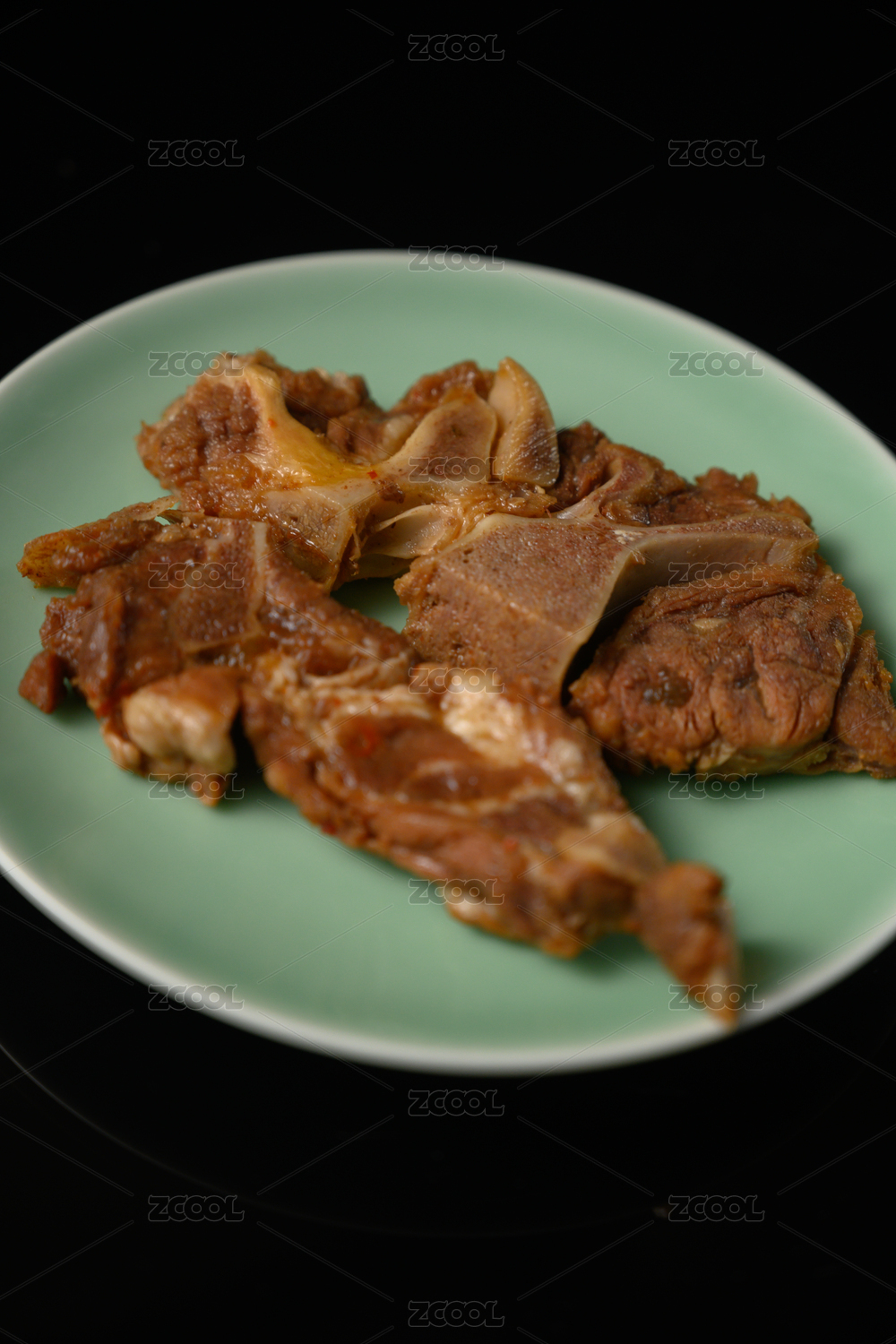 桌面上的盤子里的美味可口的醬骨頭