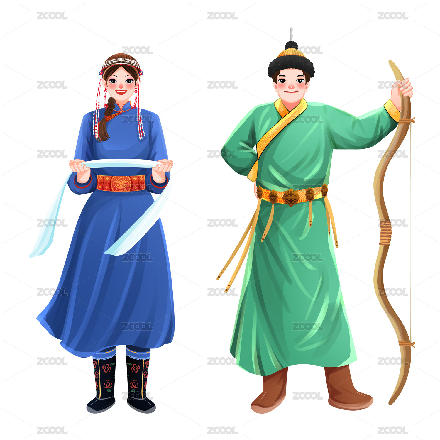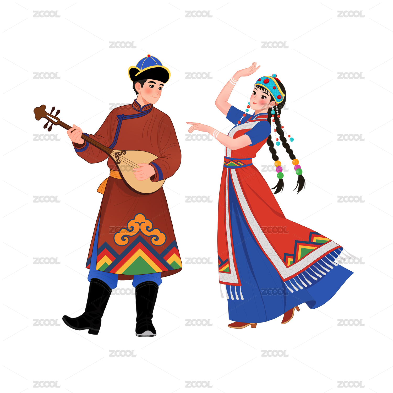 五十六個(gè)民族之蒙古族少年少女插畫元素
