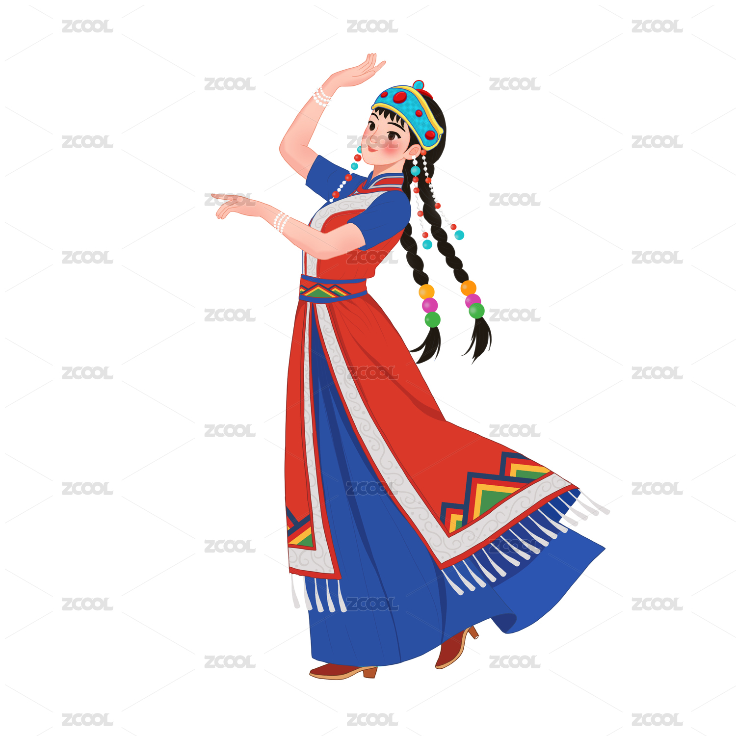 中國(guó)五十六個(gè)民族蒙古族少女盛裝女性服飾插畫