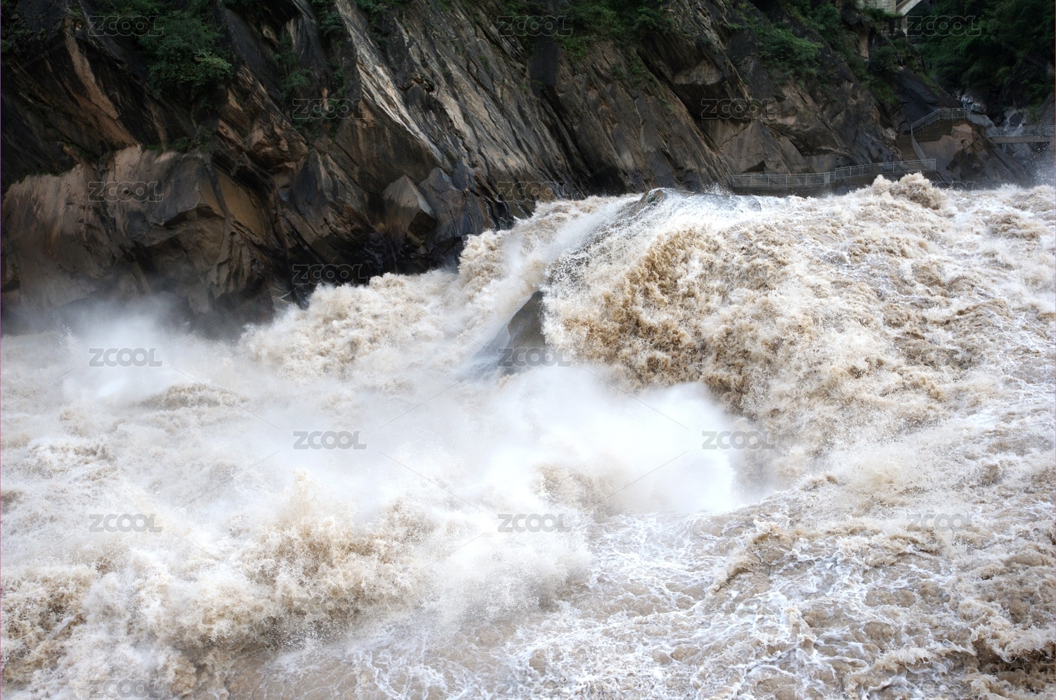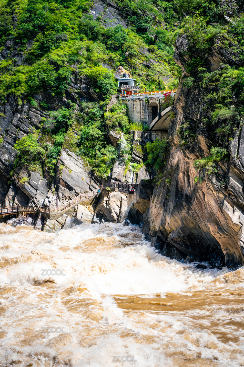 中國云南夏季虎跳峽豐水季峽谷