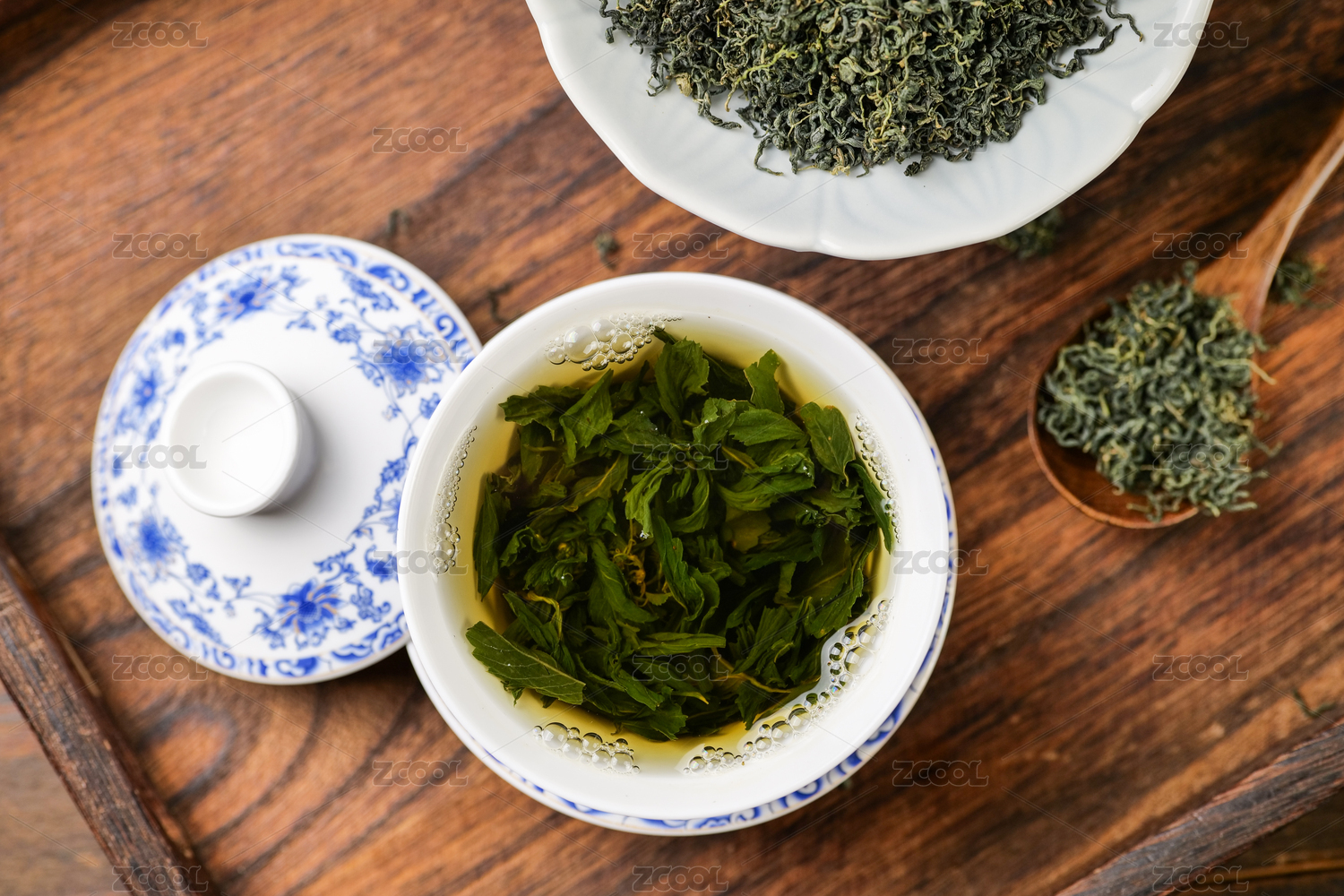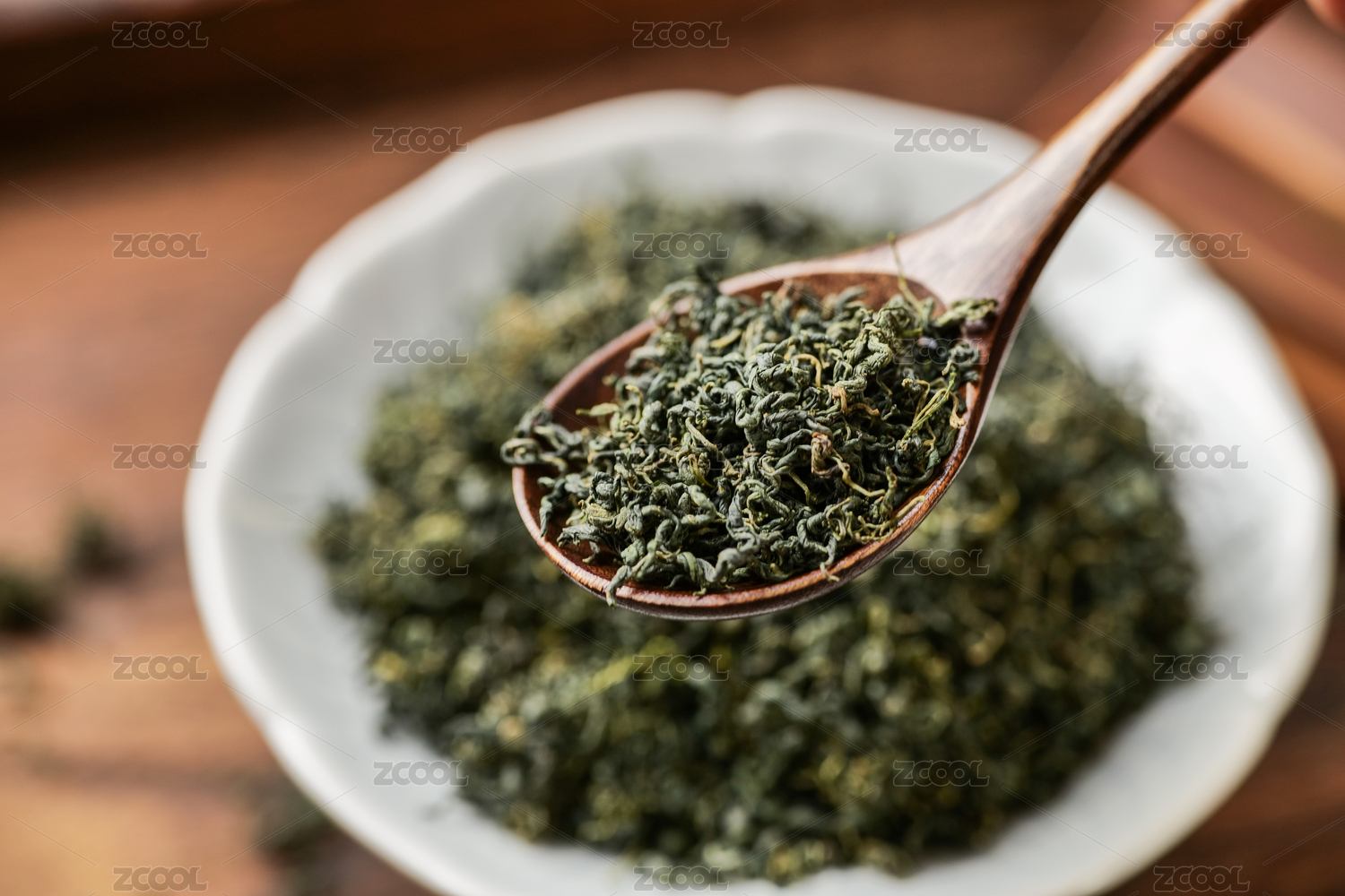 桌面上的盤子里的干爽的絞股藍