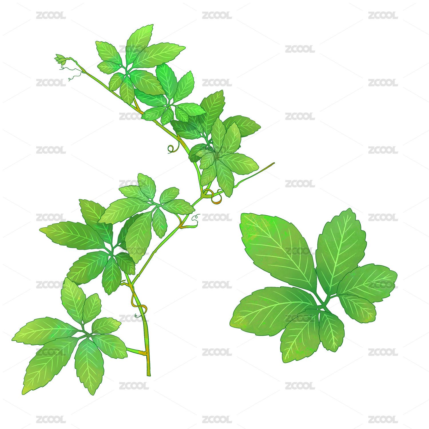 手繪水彩中藥藥材絞股藍插畫