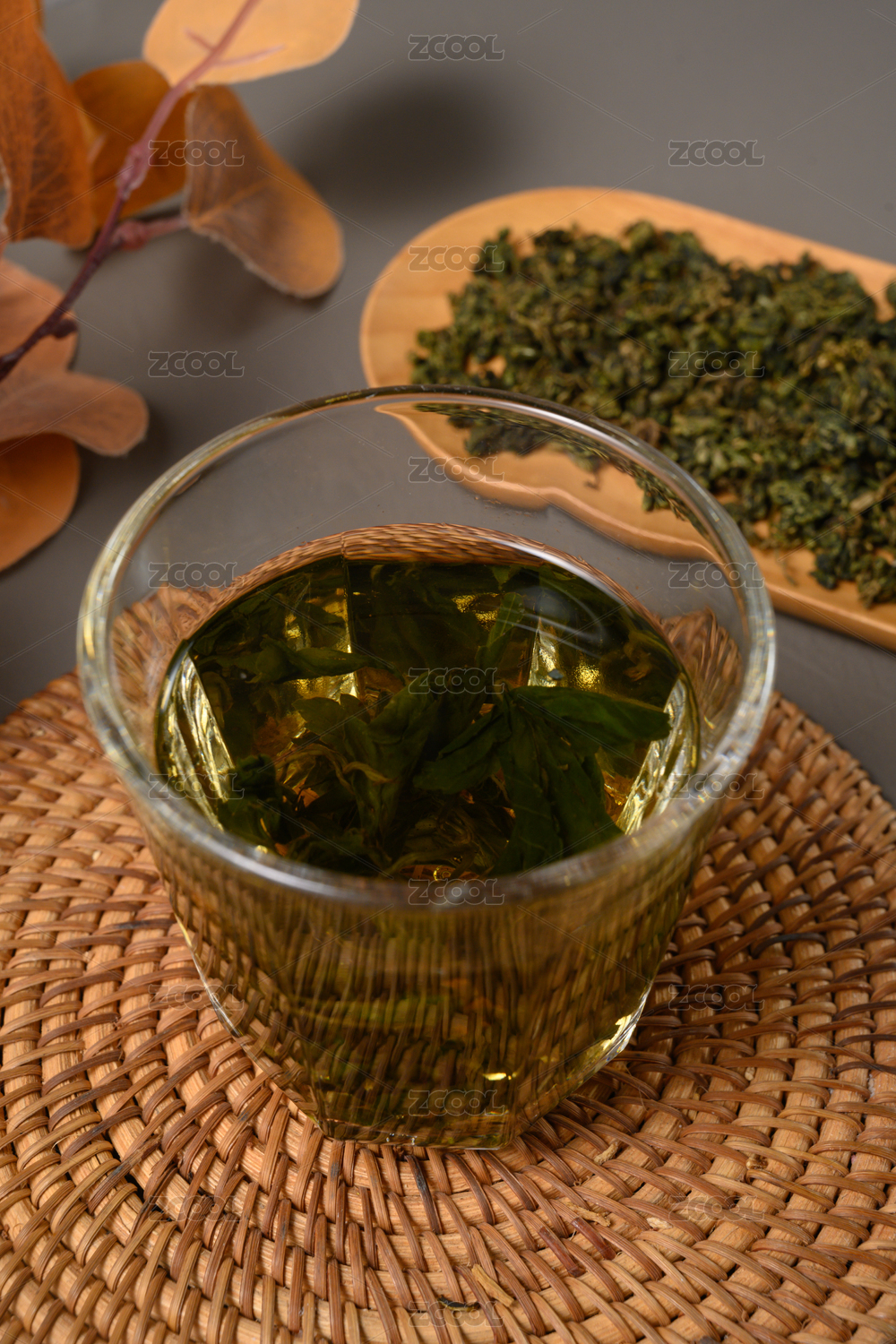 桌面上的杯子里的甘甜可口的絞股藍茶