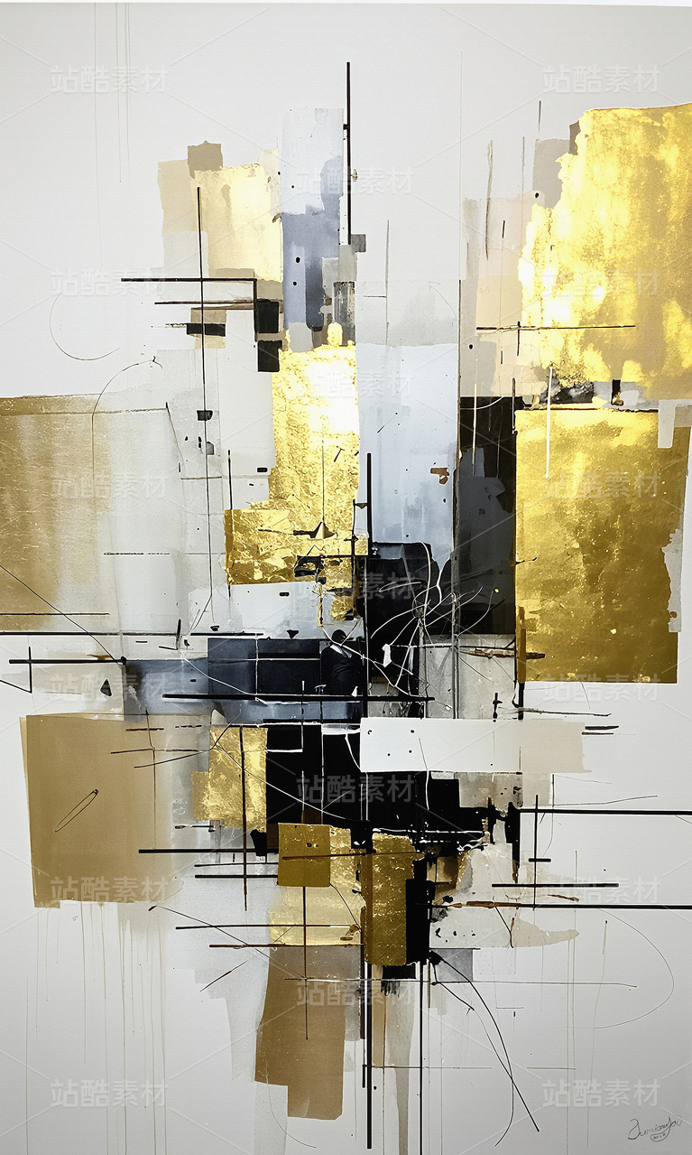 抽象金色線條色塊抽象水墨畫抽象油畫抽象裝飾畫