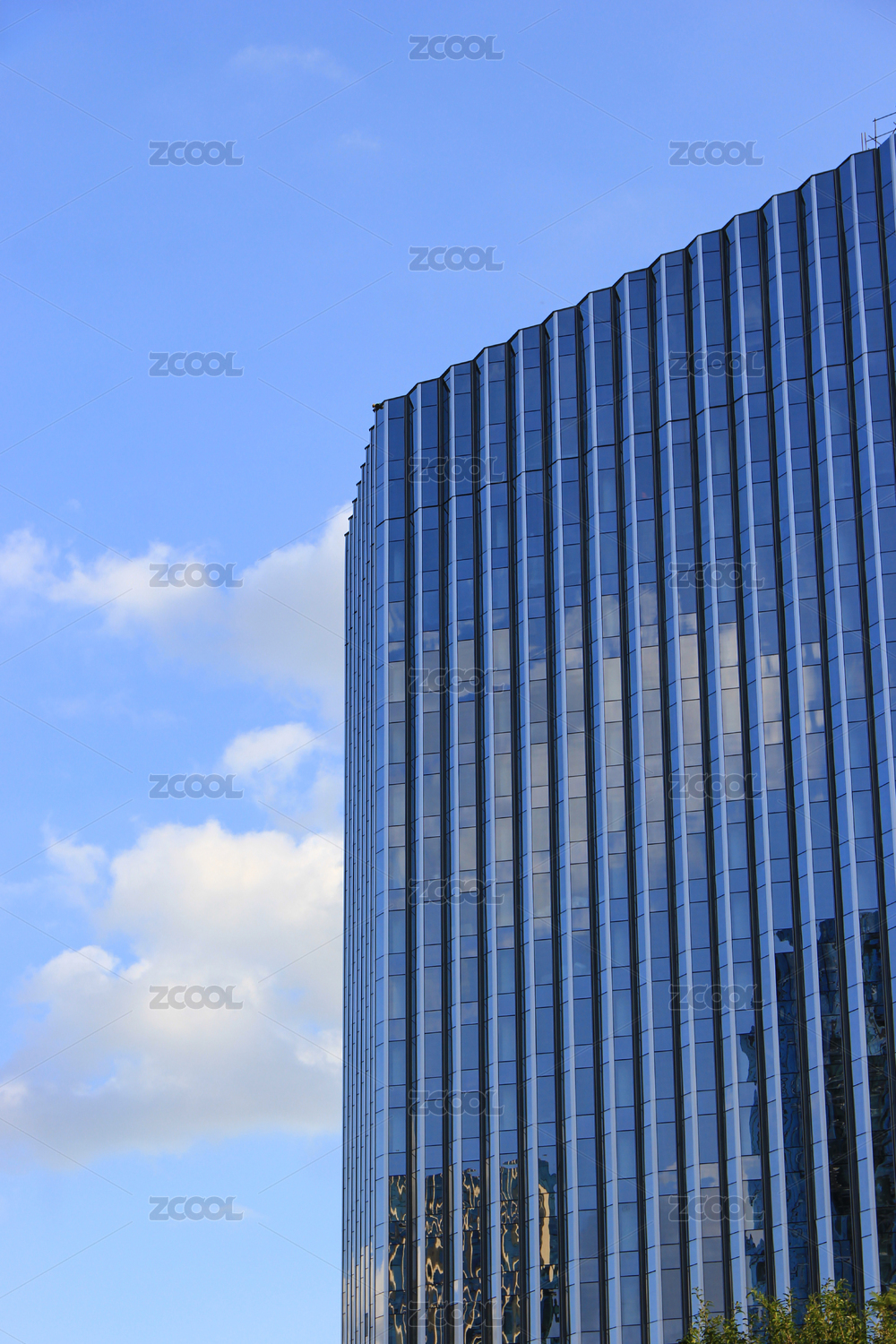 無人廣闊落地玻璃墻面辦公室外觀