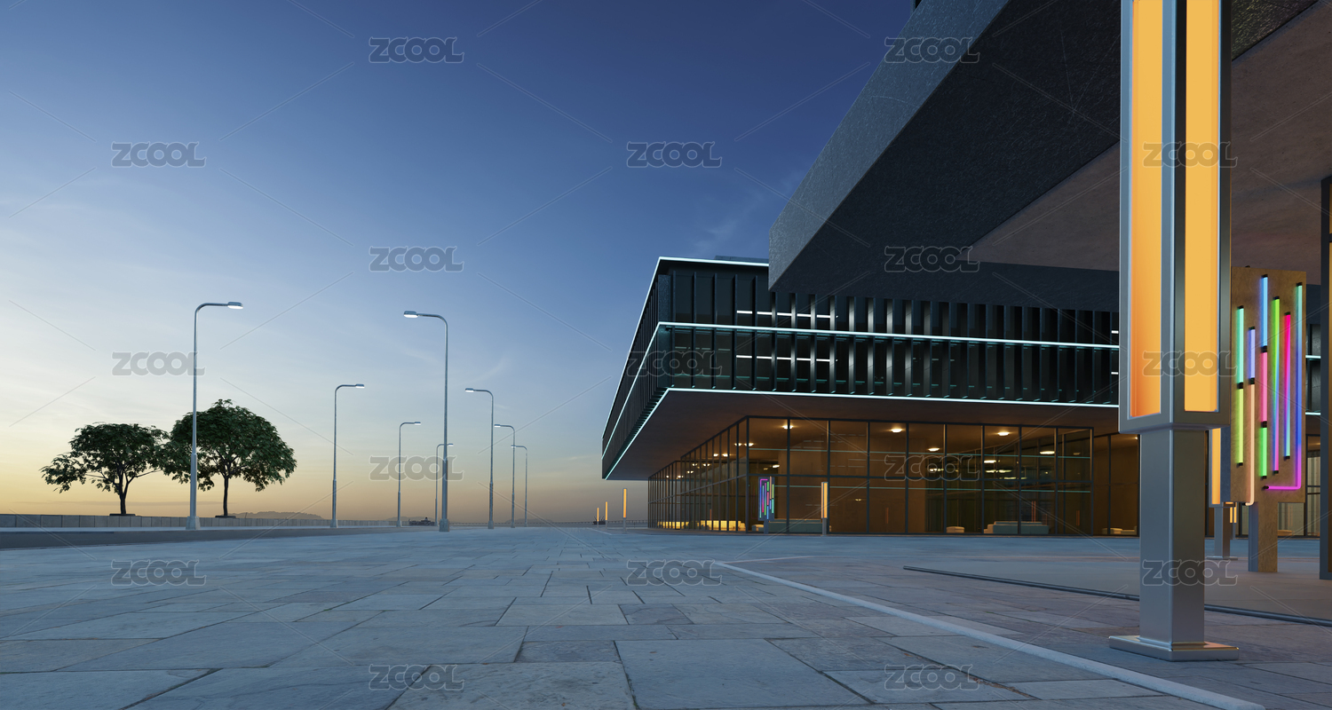 空地與現(xiàn)代化設(shè)計建筑物外觀圖
