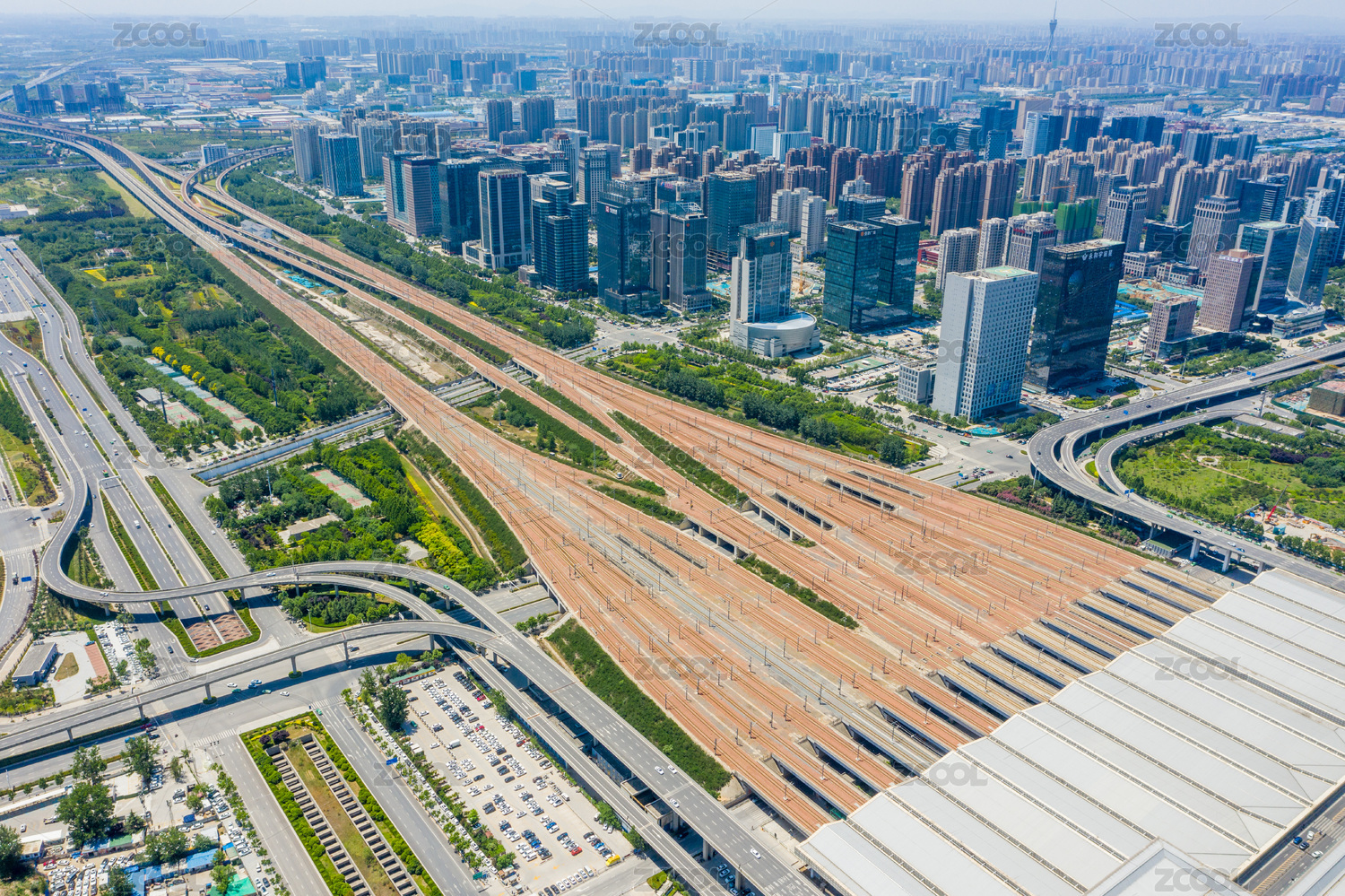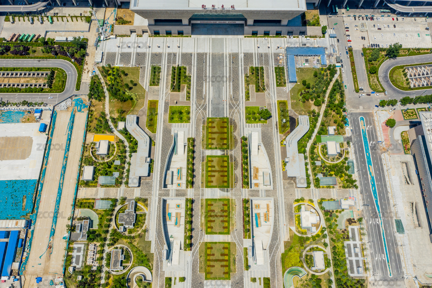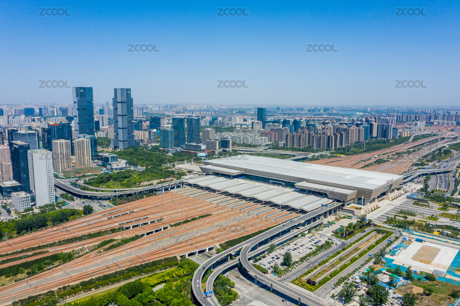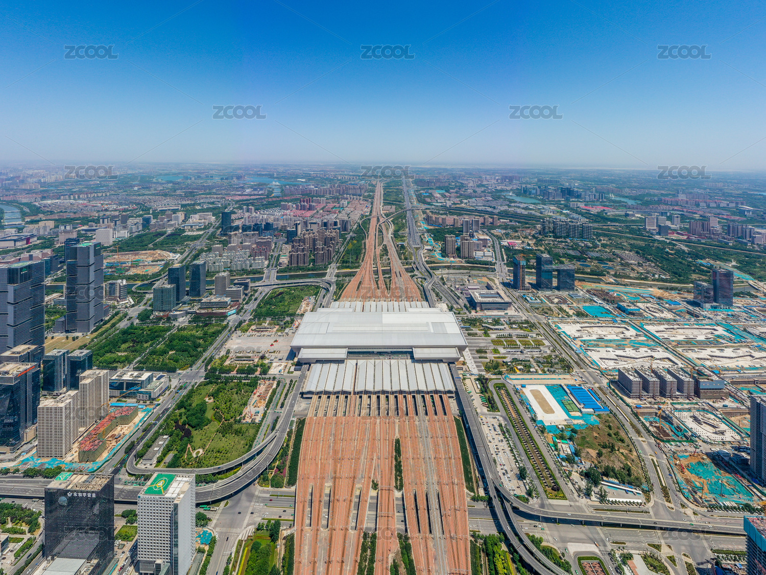 航拍鐵路樞紐中國(guó)河南鄭州東站高鐵站