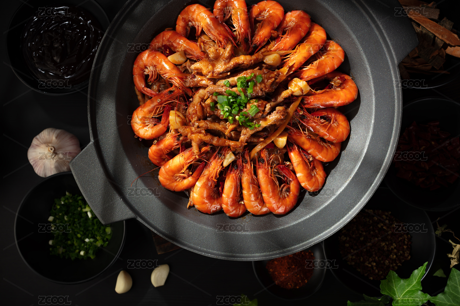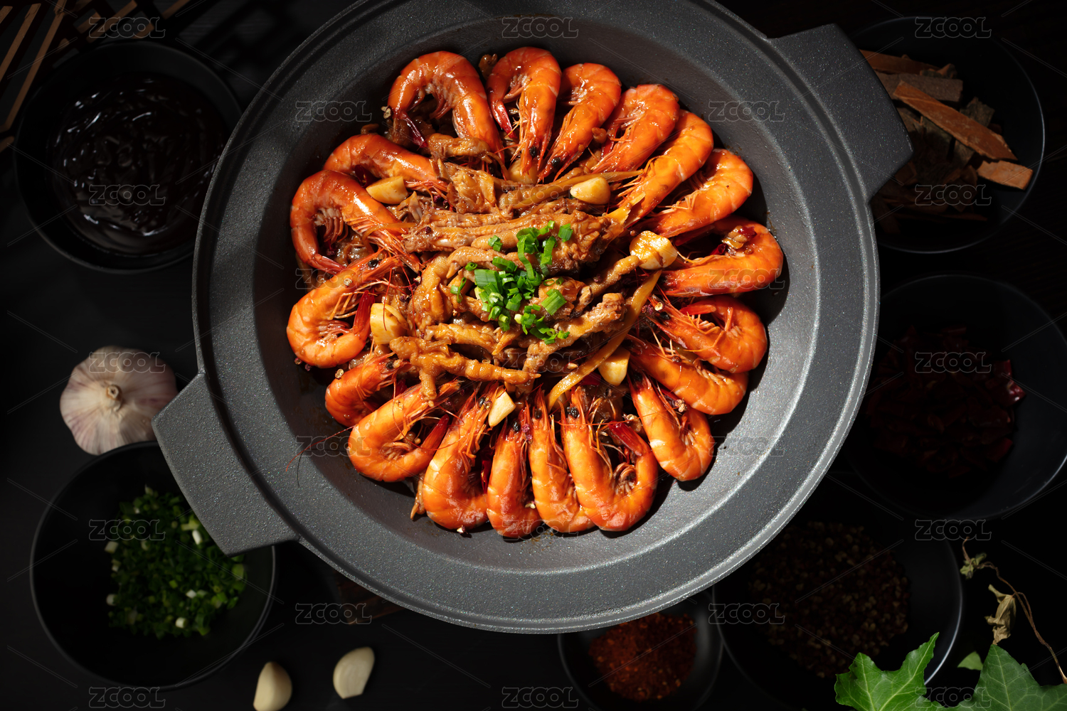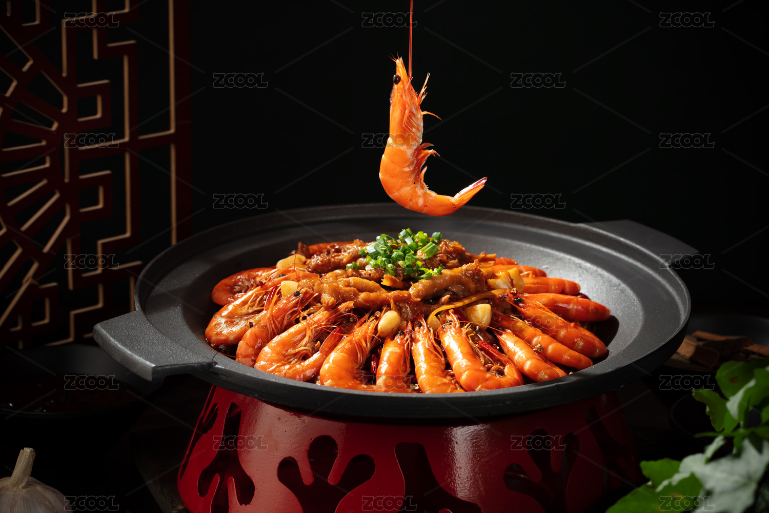 黑鐵鍋里面的麻辣蝦煲干鍋蝦