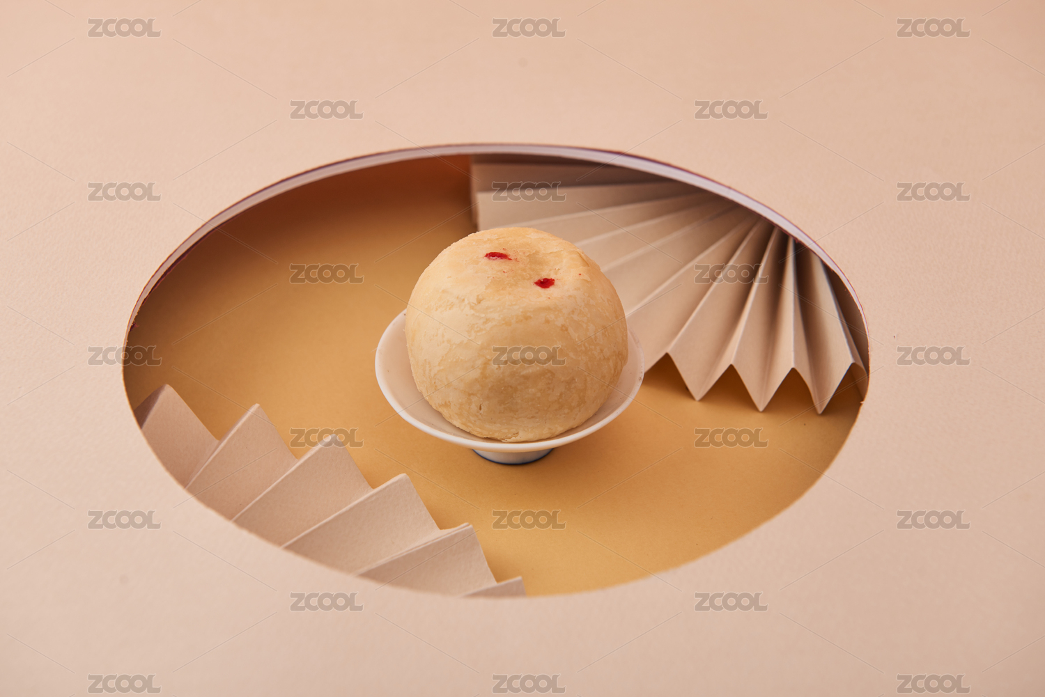 肉粉色背景鏤空圓窗內(nèi)的饃饃