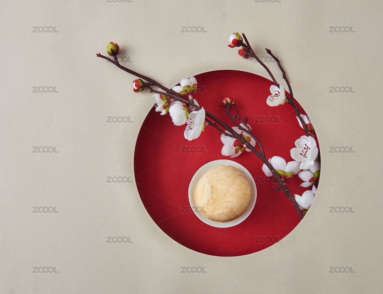 灰色背景下紅色鏤空窗內(nèi)的饃饃