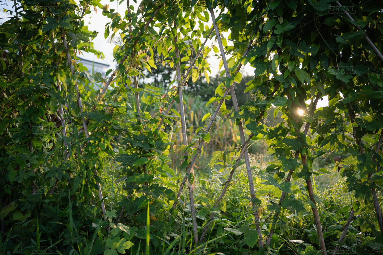 在菜園架起的用來(lái)防止進(jìn)入的木籬笆墻