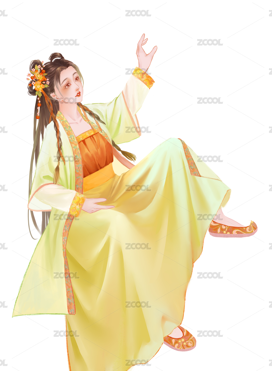 中式傳統(tǒng)古風(fēng)漢服古裝女人坐著伸手抬手