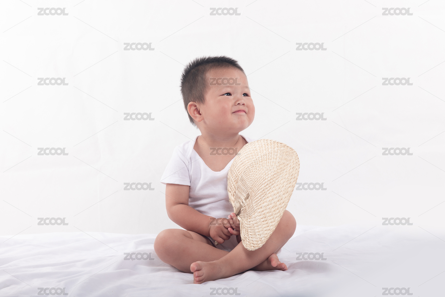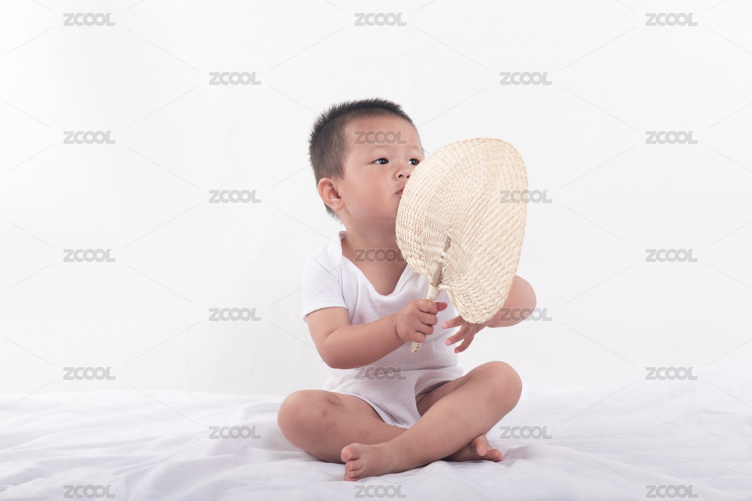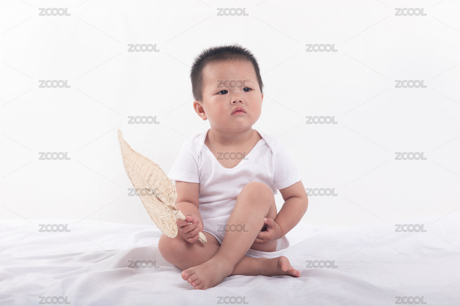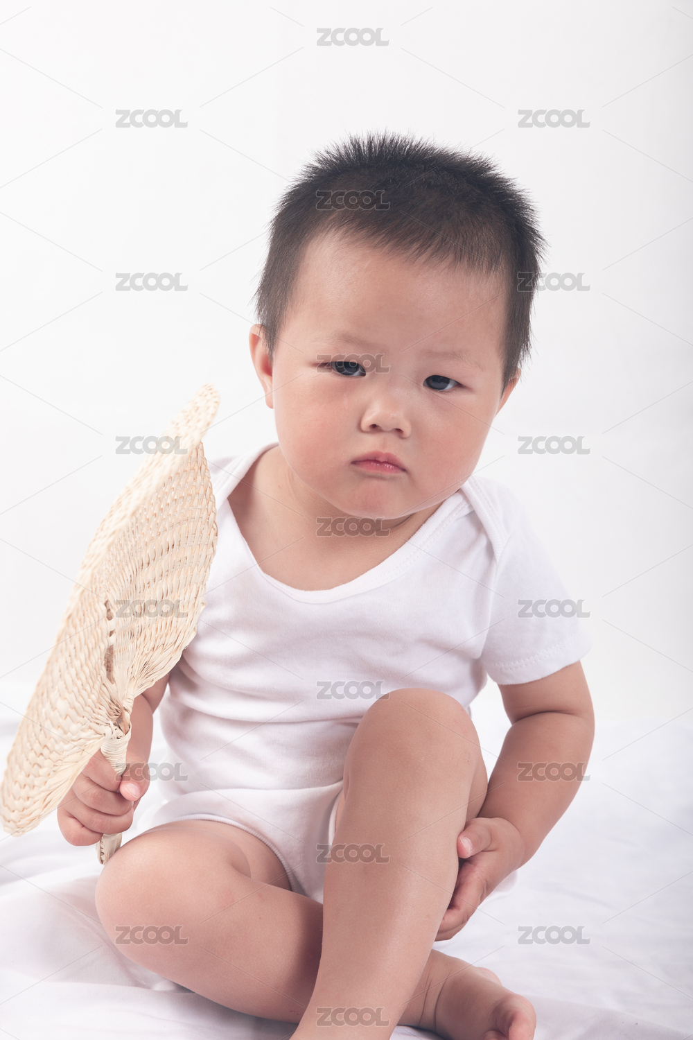 手拿著蒲扇坐著的小寶寶